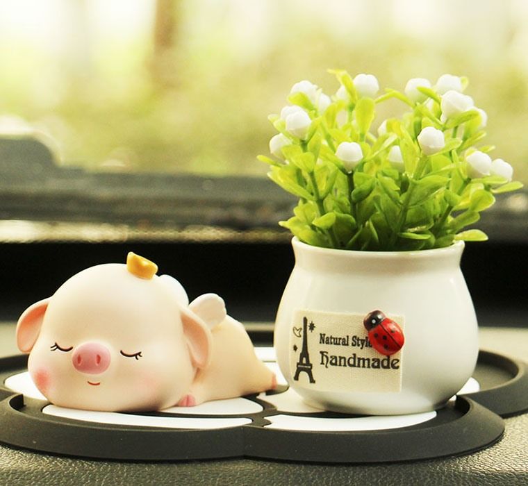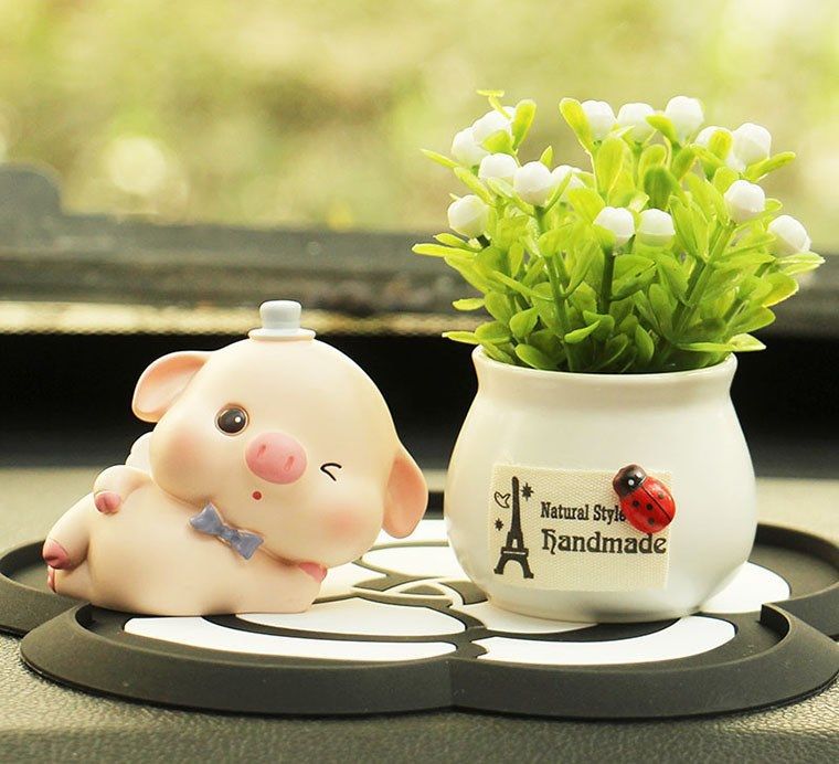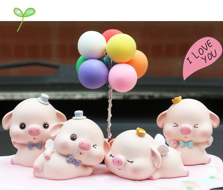 자동차 장식품 만화 자동차 계기판 장식 귀여운 돼지 사무실 가구 장식품 수지 아기 돼지