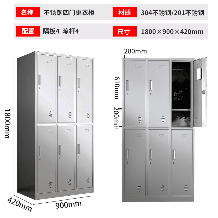 자물쇠가있는 스테인리스 사물함 기숙사 욕실 식품 공장 먼지없는 정화 작업장 4 도어 6 도어 직원 사물함스토어 가기