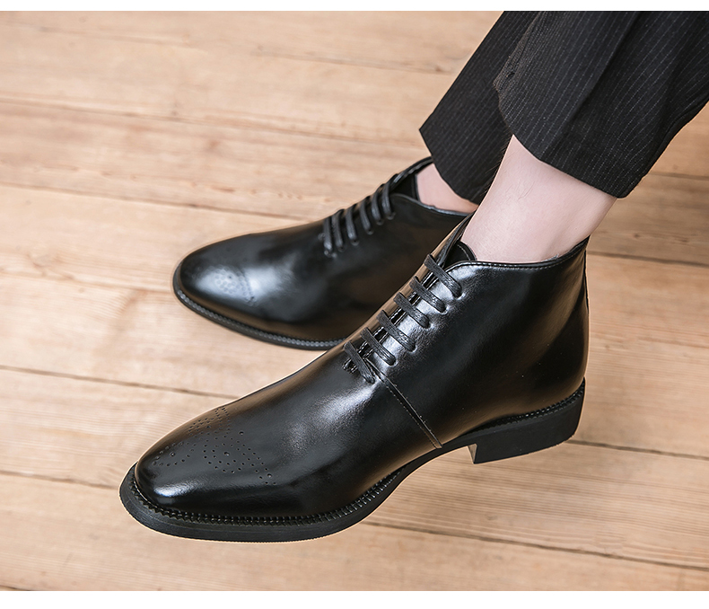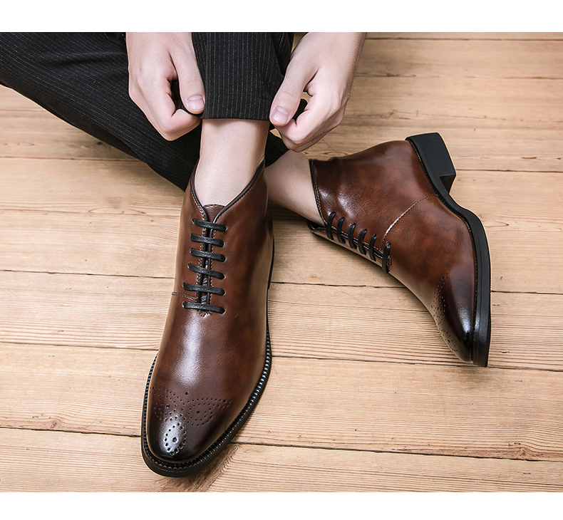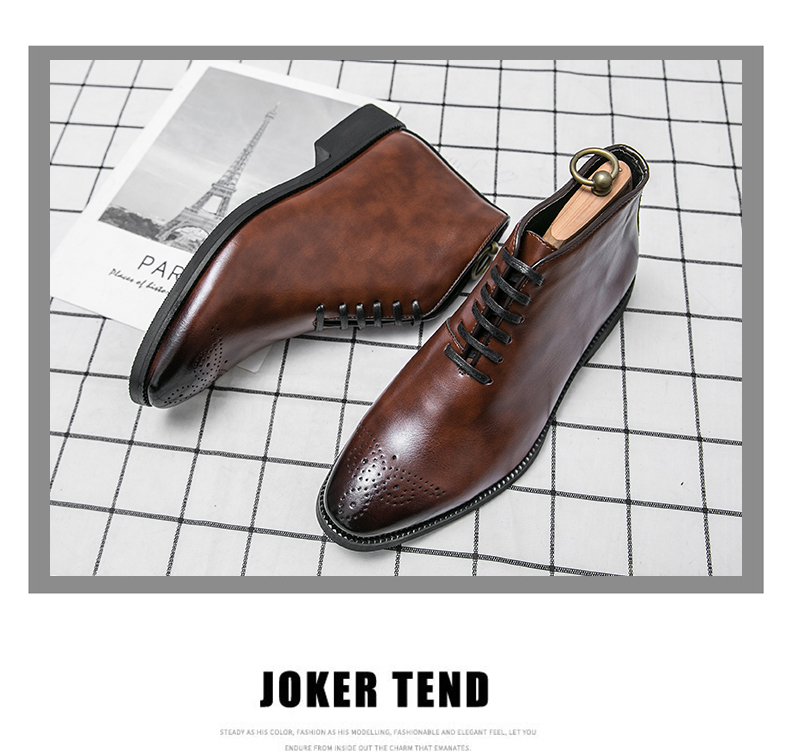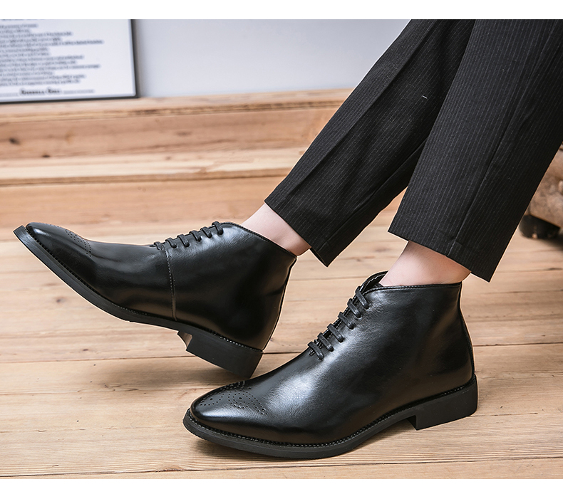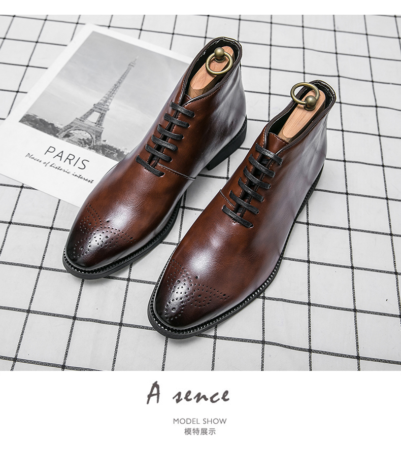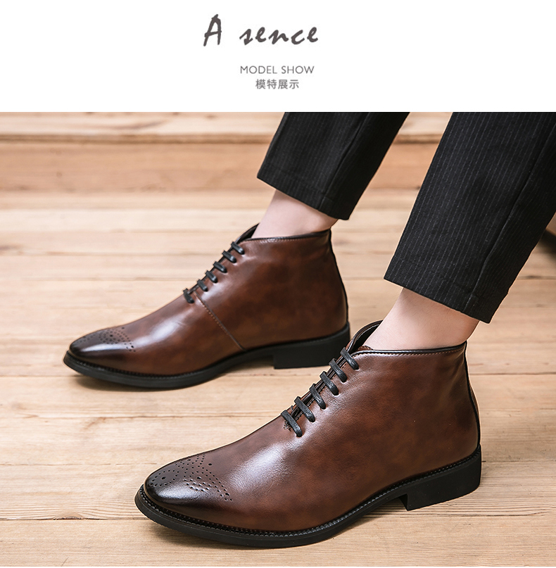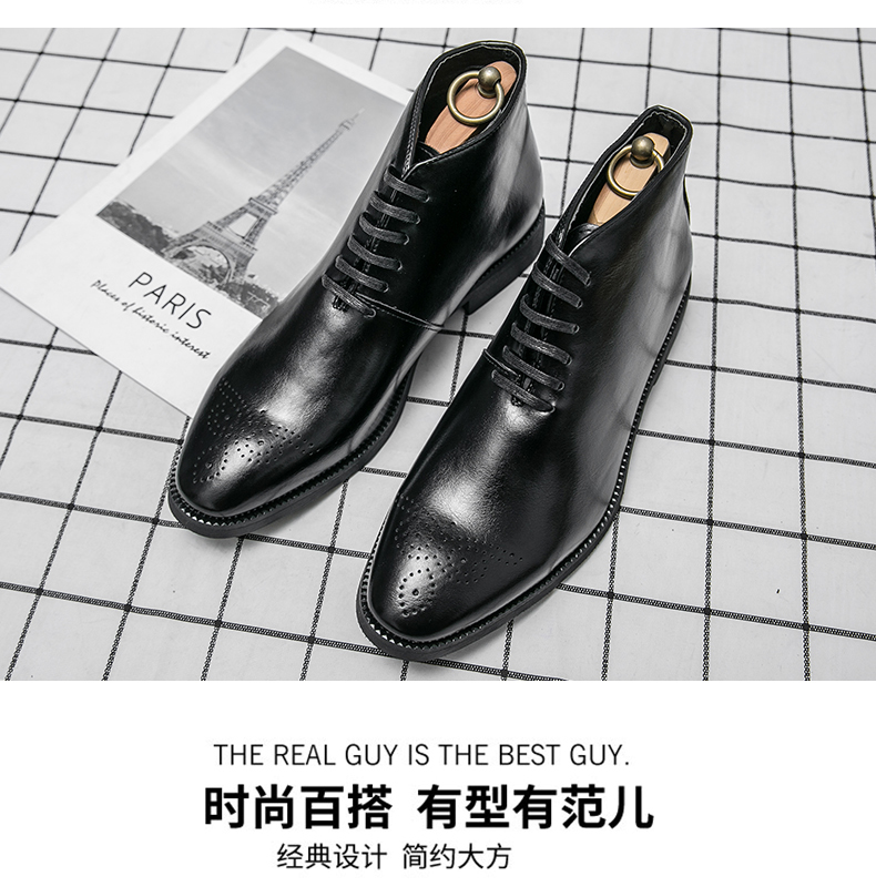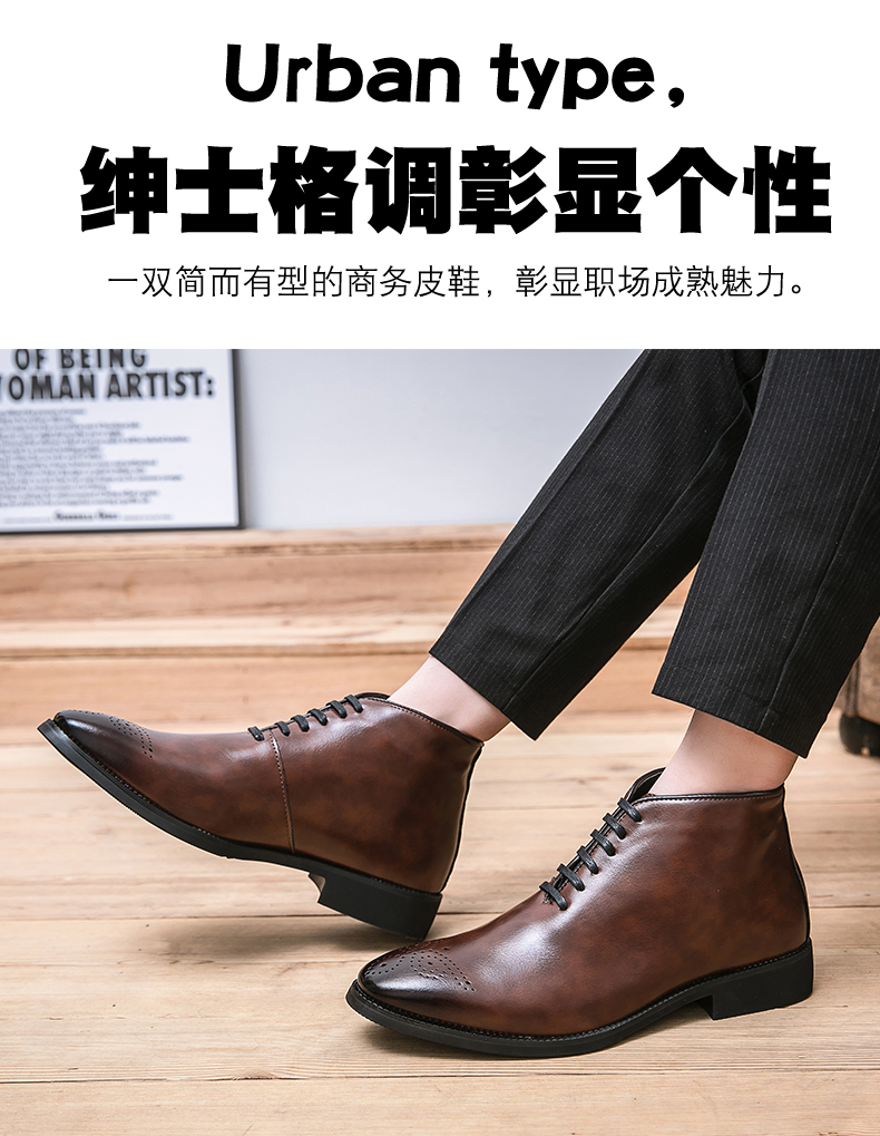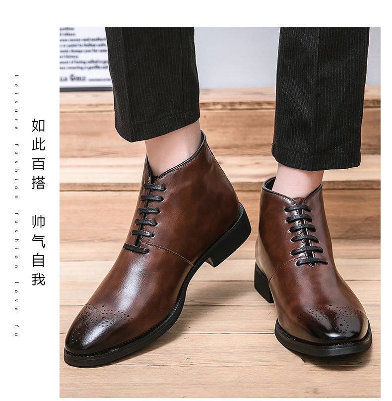 男士高帮布洛克皮鞋英伦风马丁靴潮流中帮系带短靴冬季牛皮男靴子