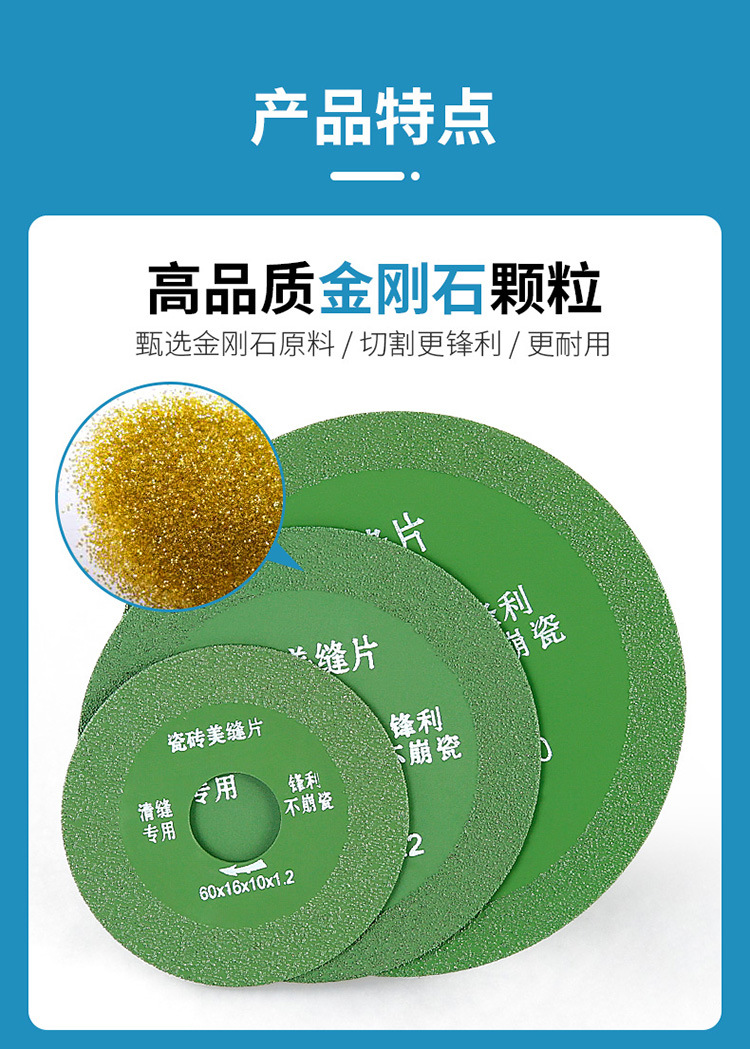 세라믹 타일 뷰티 조인트 커팅 피스 솔기 클리어링 및 슬릿 톱 피스 앵글 그라인더 특수 초박형 드라이 커팅 다이아몬드 톱 피스스토어 가기