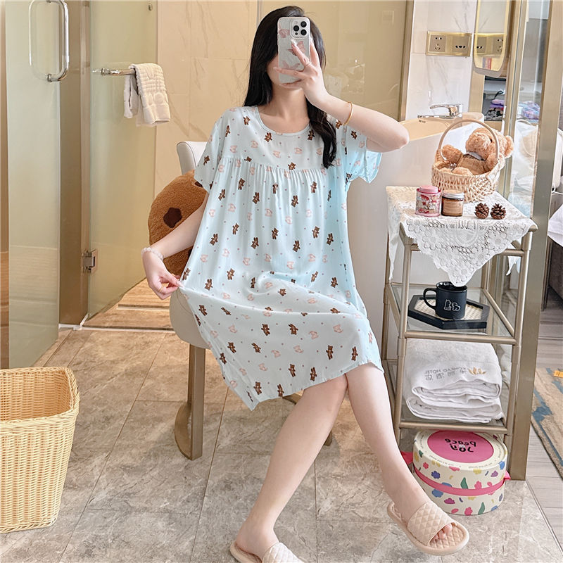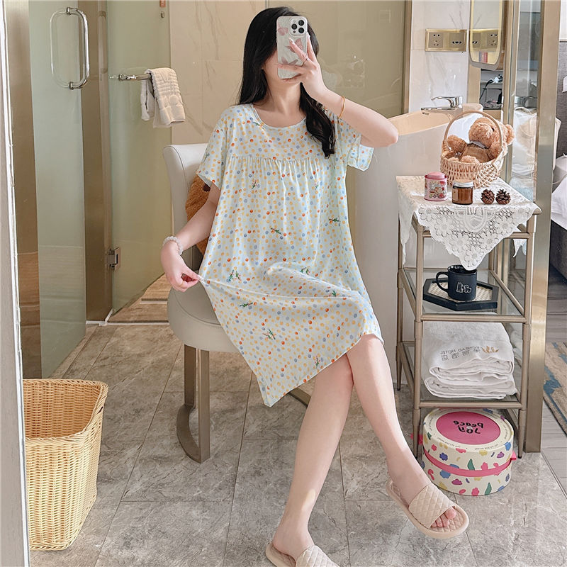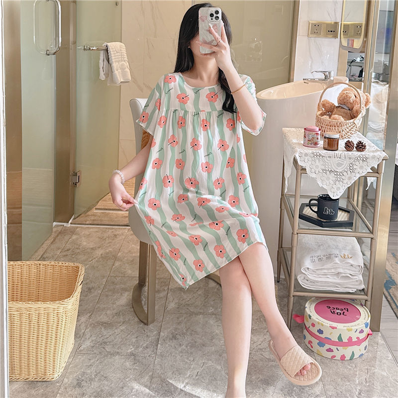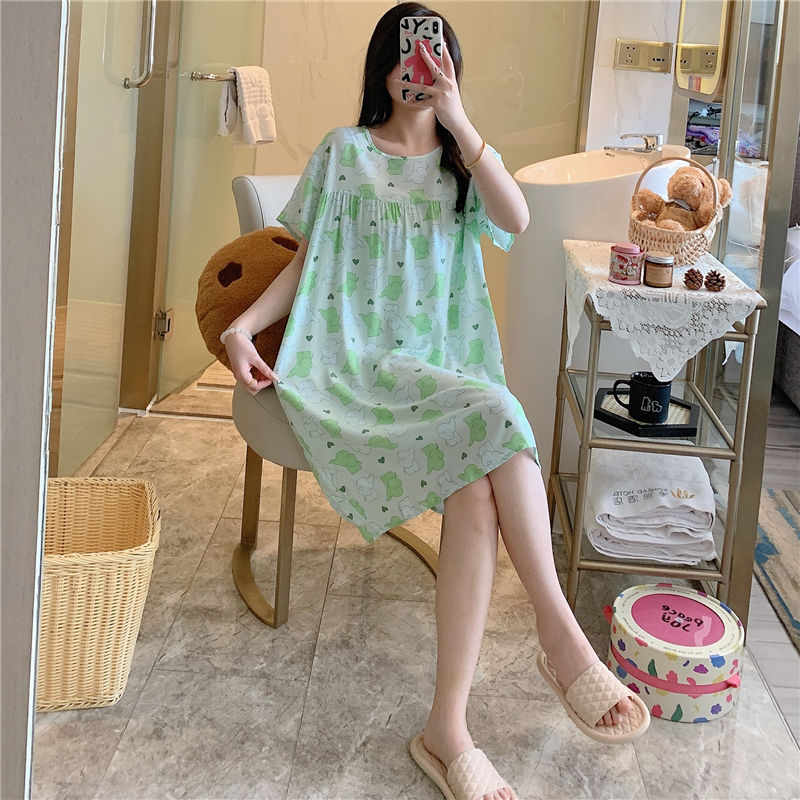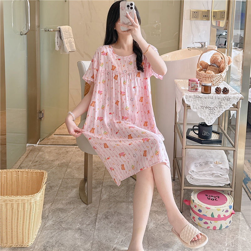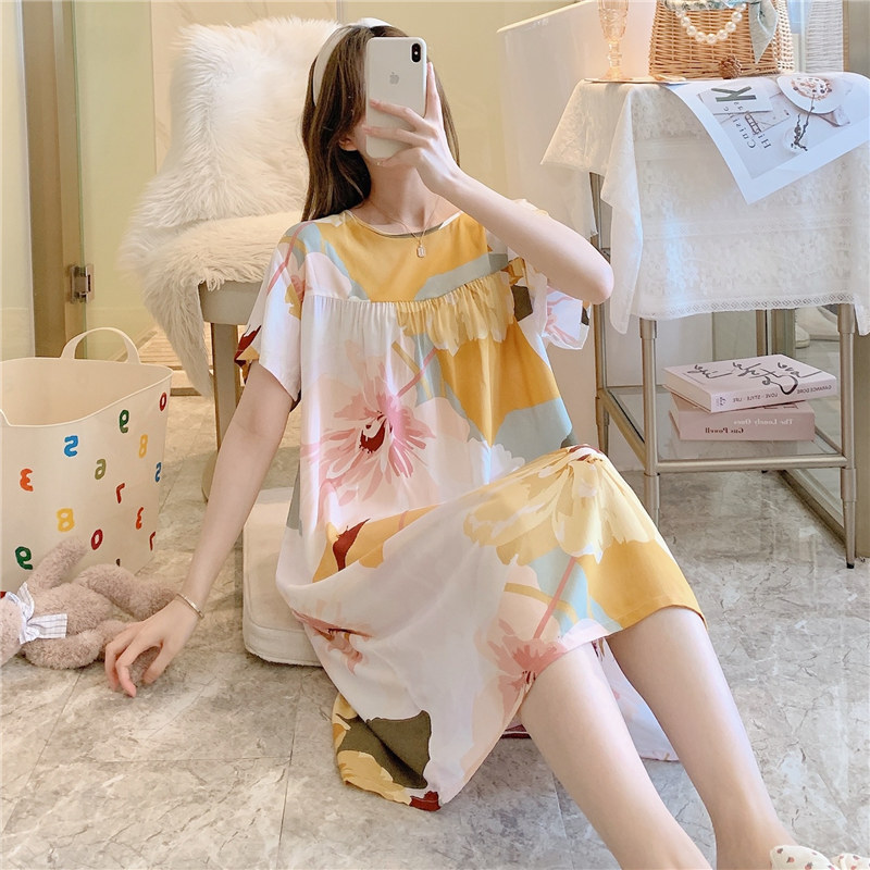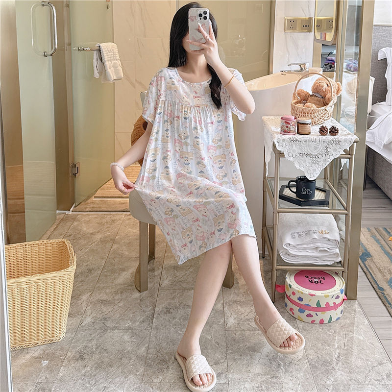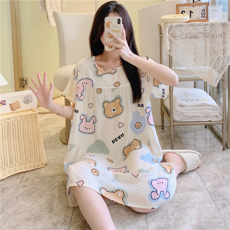 면 실크 잠옷 여자의 여름 얇은 반팔 만화 인쇄 잠옷 인터넷 연예인 라이브 폭발 플러스 사이즈 봄과 가을 가정 의류스토어 가기