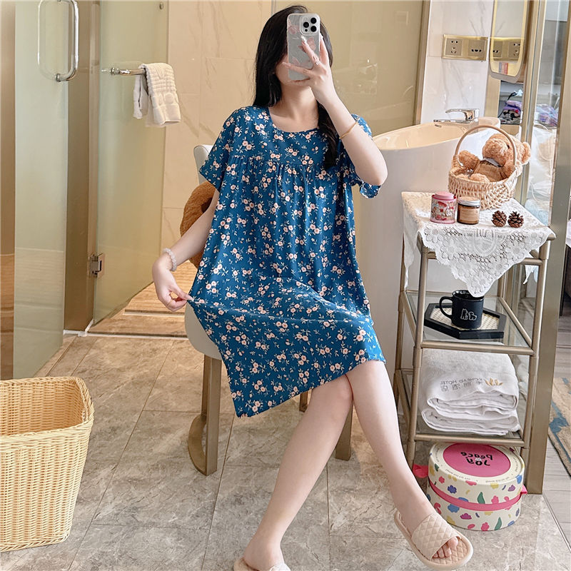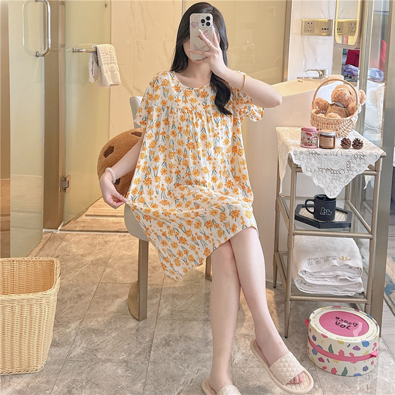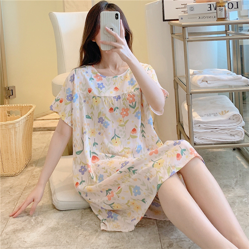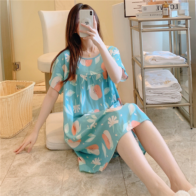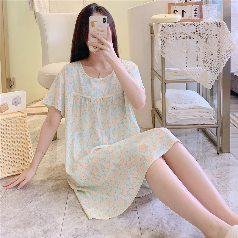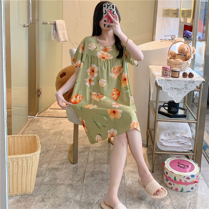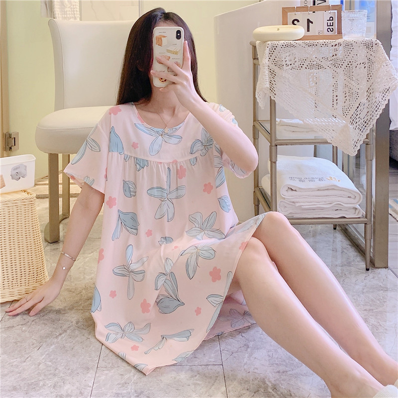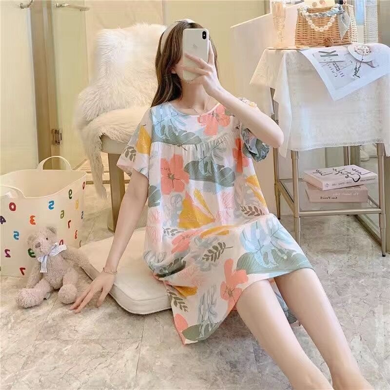 면 실크 잠옷 여자의 여름 얇은 반팔 만화 인쇄 잠옷 인터넷 연예인 라이브 폭발 플러스 사이즈 봄과 가을 가정 의류스토어 가기