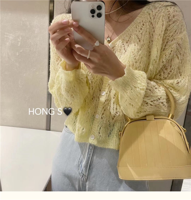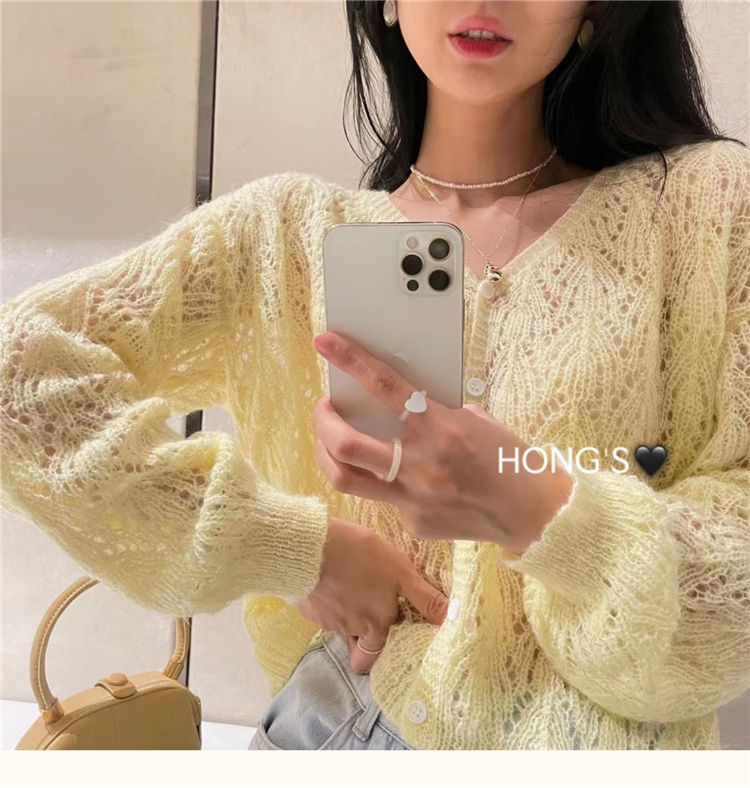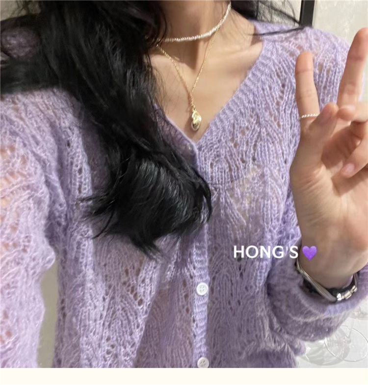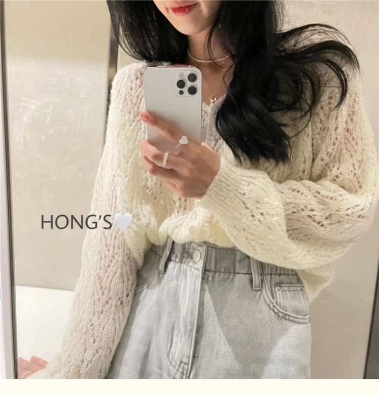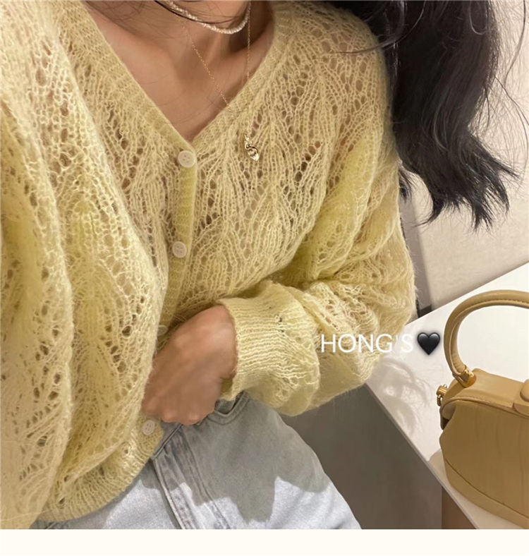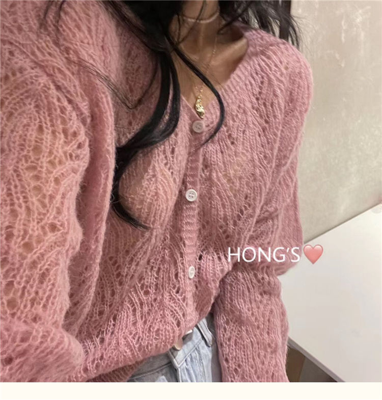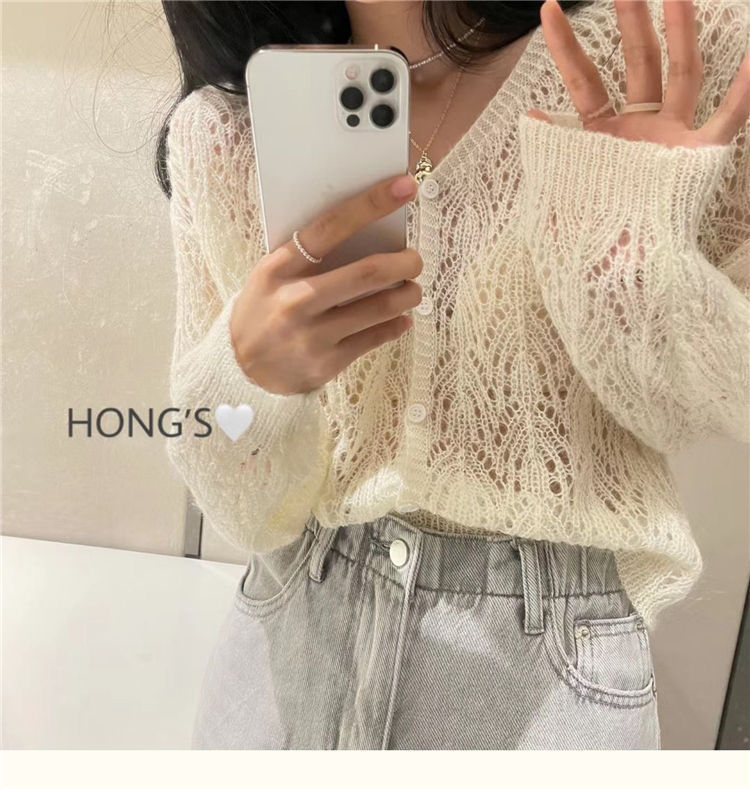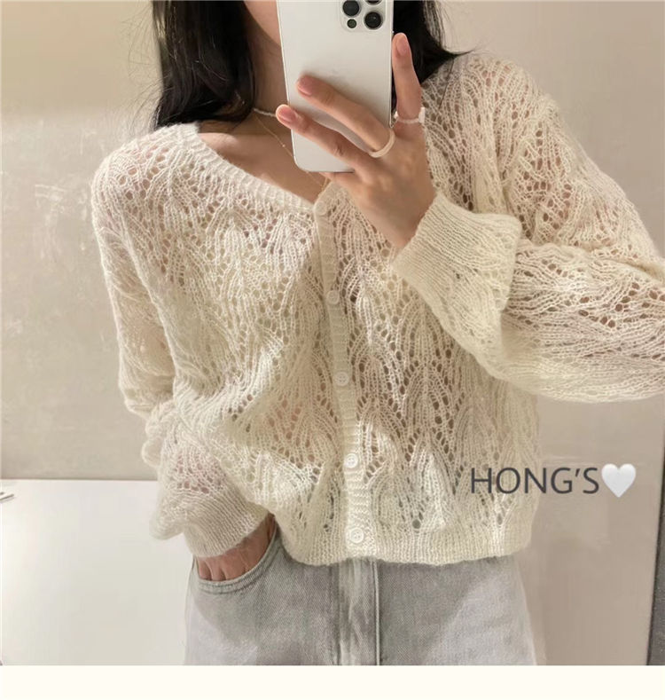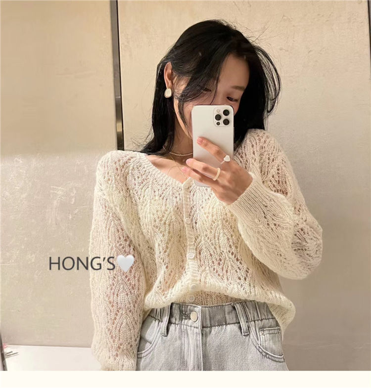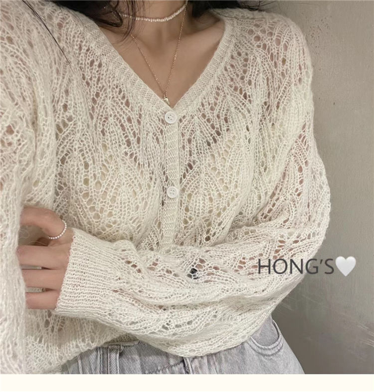 얇은 속이 빈 스웨터 카디건 코트 여성의 부드러운 부드러운 V 넥 싱글 브레스트 스웨터 에어컨 셔츠 태양 보호 의류