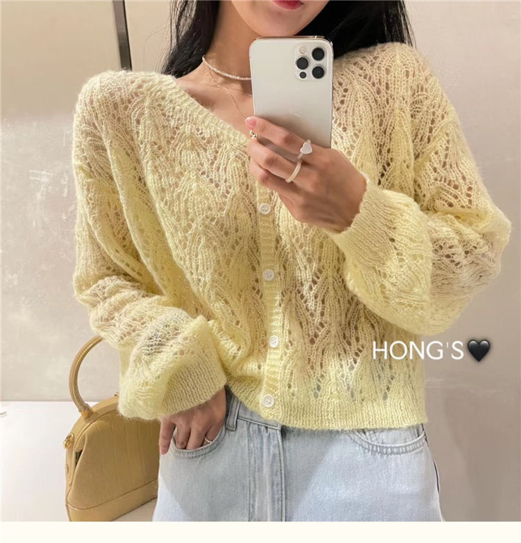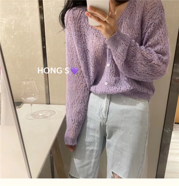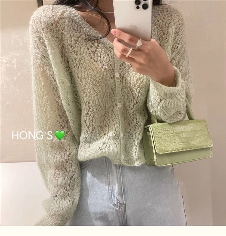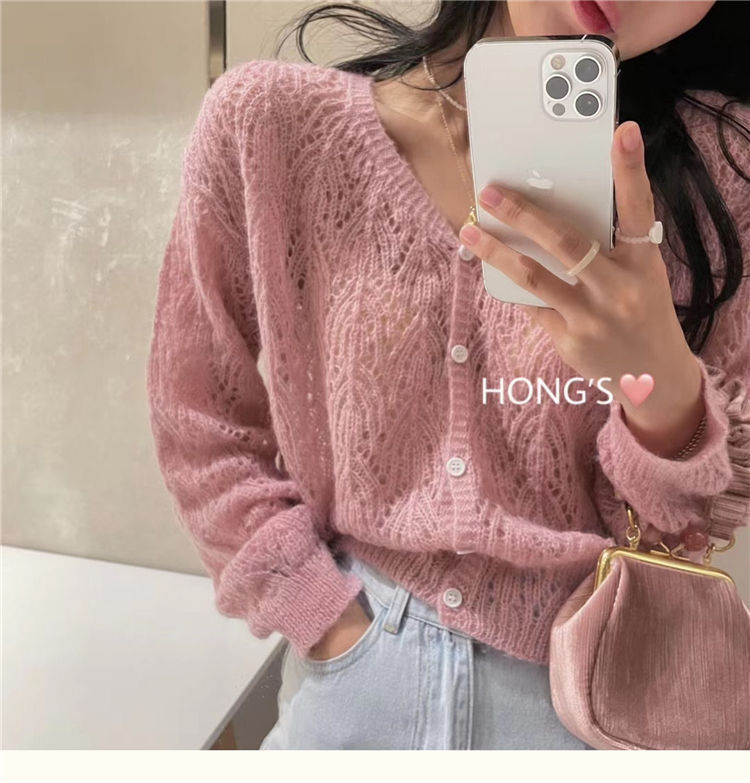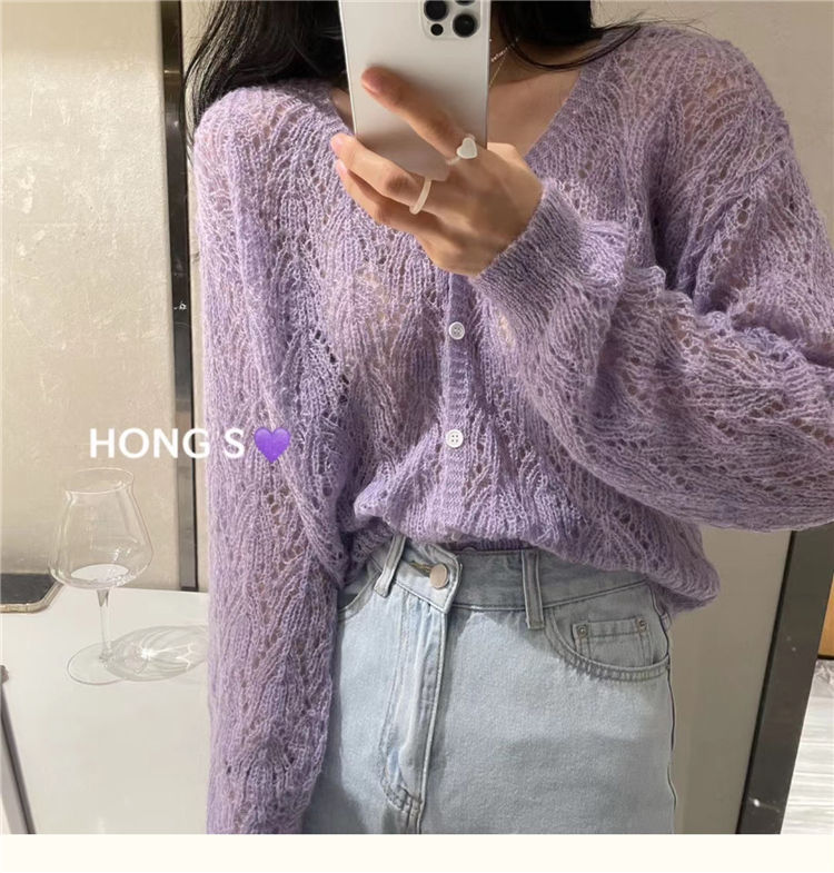 얇은 속이 빈 스웨터 카디건 코트 여성의 부드러운 부드러운 V 넥 싱글 브레스트 스웨터 에어컨 셔츠 태양 보호 의류스토어 가기