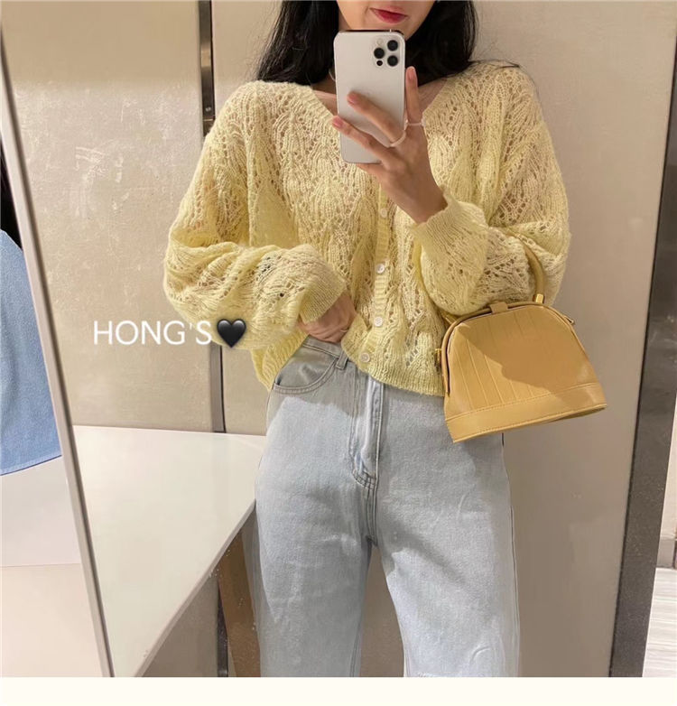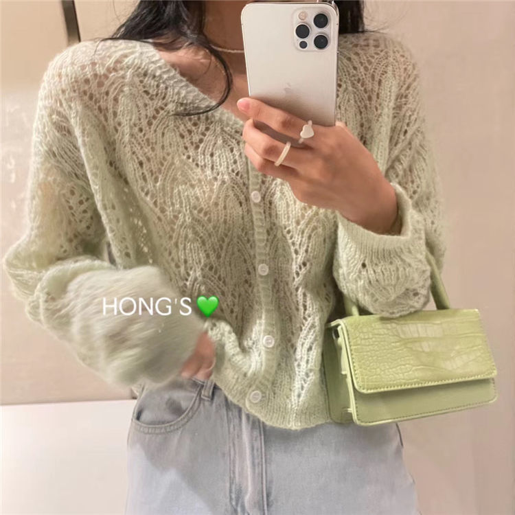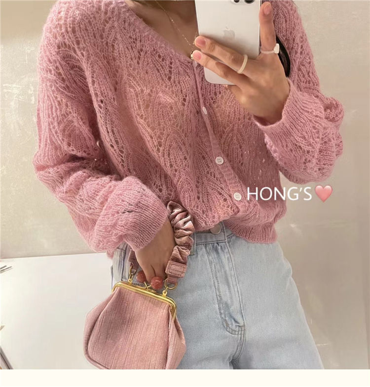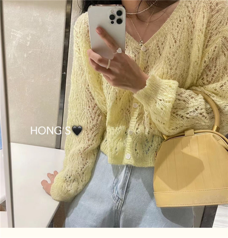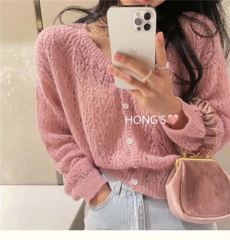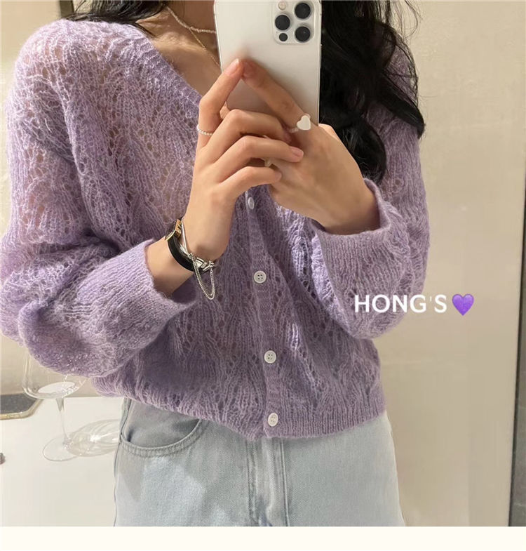 얇은 속이 빈 스웨터 카디건 코트 여성의 부드러운 부드러운 V 넥 싱글 브레스트 스웨터 에어컨 셔츠 태양 보호 의류스토어 가기