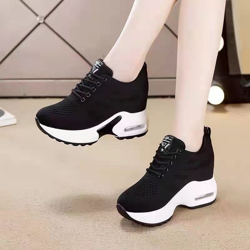 여성을위한 내부 강화 운동화 2023 봄과 여름 통기성 메쉬 신발 캐주얼 신발 다목적 한국 스타일 두꺼운 밑창 그물 레드 스니커즈스토어 가기