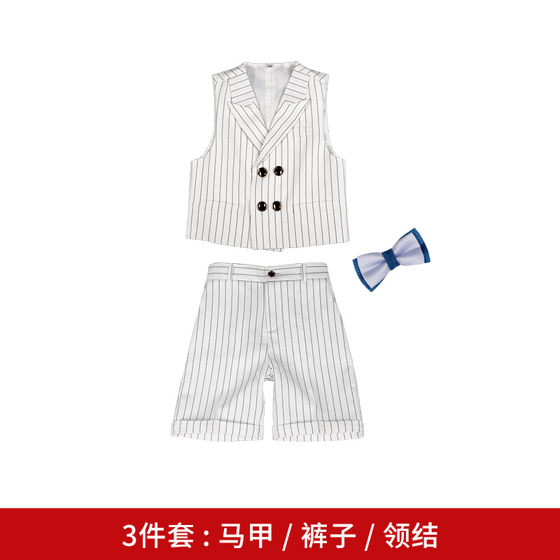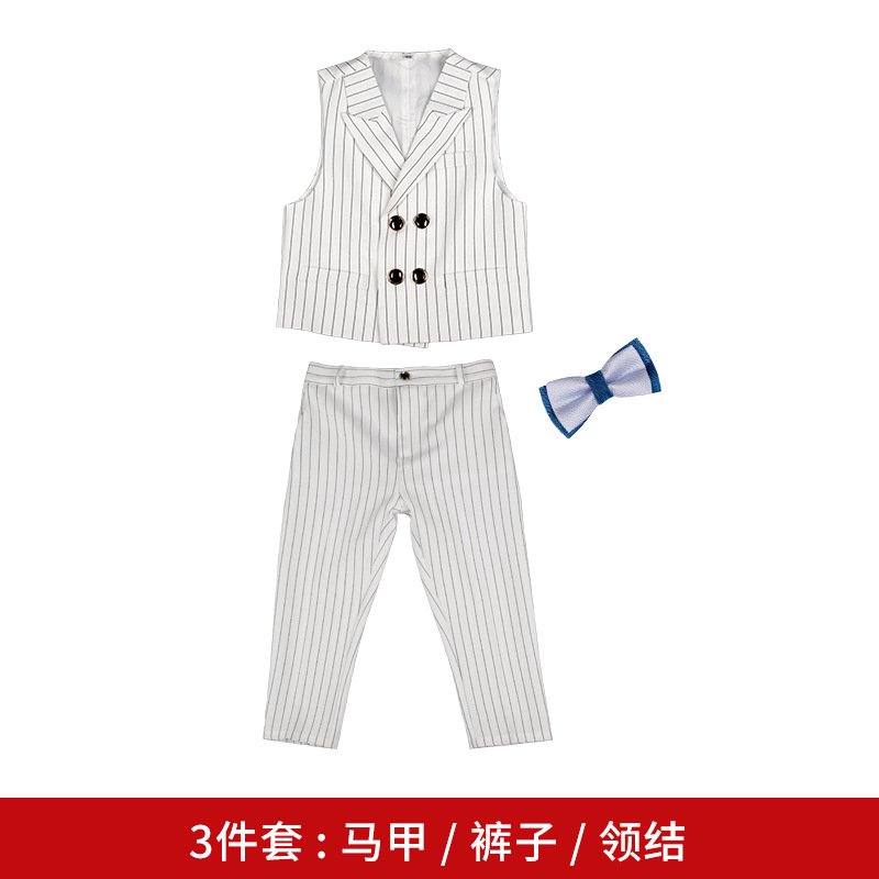 소년 봄 새로운 패션 줄무늬 조끼 세트 한국의 어린이 연설 호스트 성능 원피스 머리카락 세대