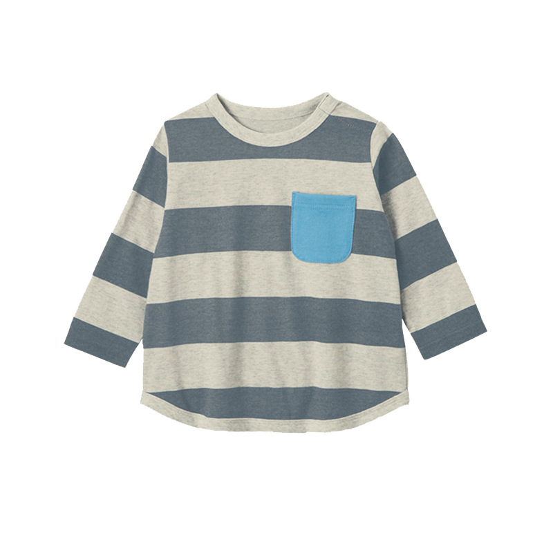 소셜 웨스트 파인 하우스 아동면 긴팔 티셔츠 아기의 봄과 가을 니트 스트라이프 탑 남아 클래스 베이스 셔츠스토어 가기