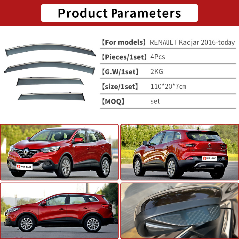 르노 Correga 써니 레인 디플렉터 백미러 비 눈썹 Kadjar 윈도우 바이저에 적합