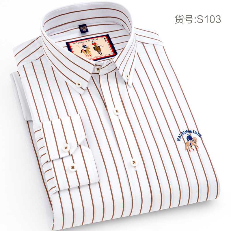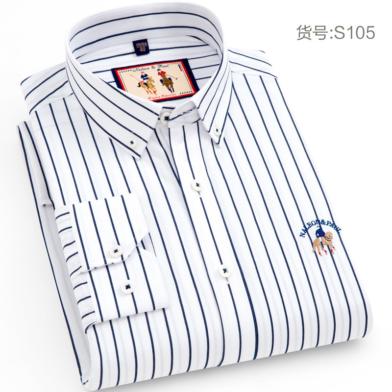 폴 남성면 스트라이프 카본 브러시 긴팔 셔츠 캐주얼 코튼 셔츠 S103 S105
