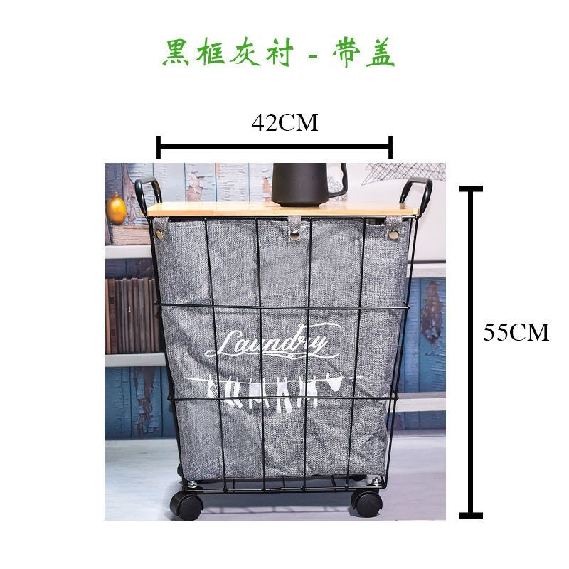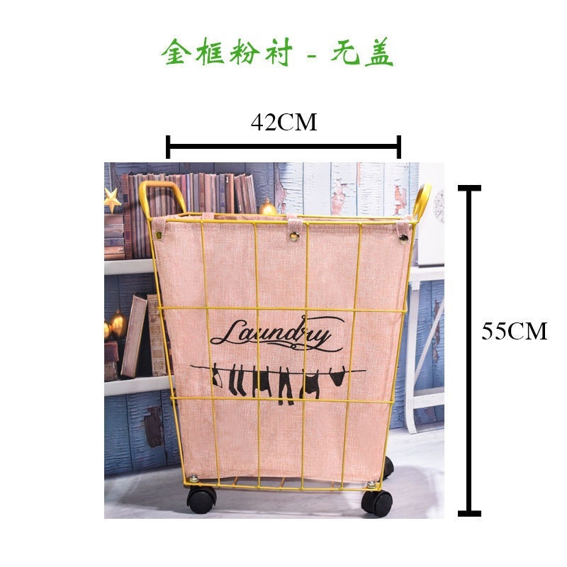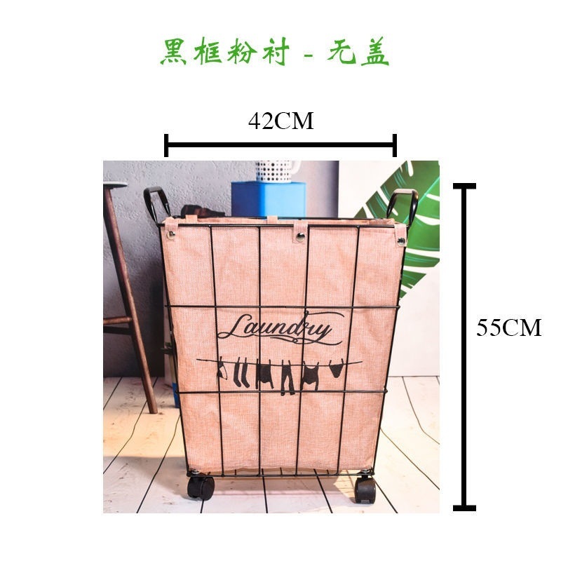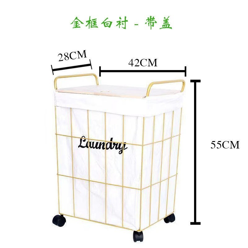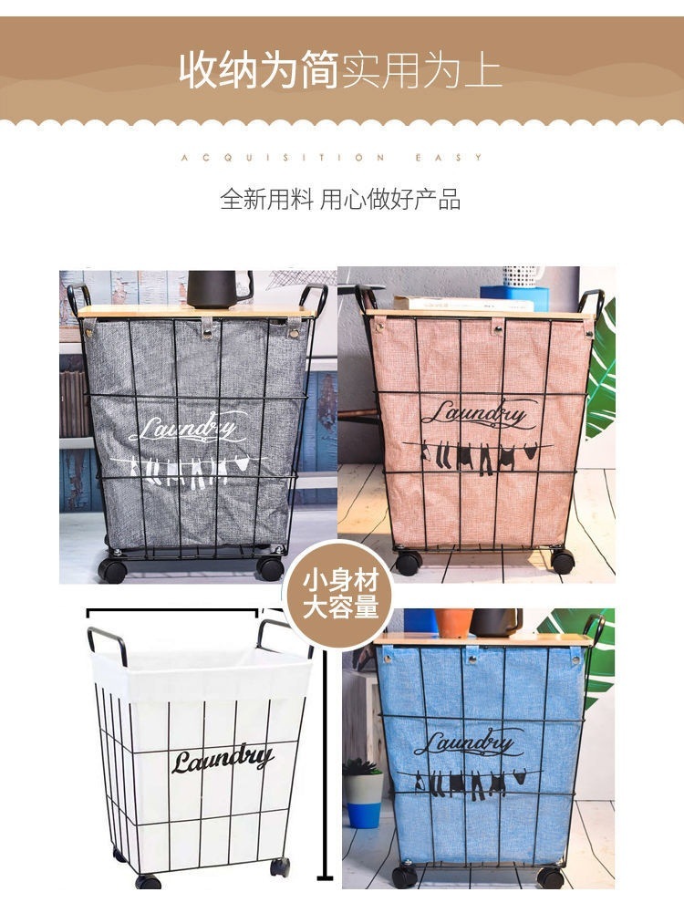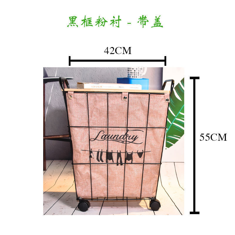 더러운 옷 바구니 카트 새로운 철 보관함 더러운 옷 바구니 세탁 바구니 뚜껑이있는 모바일 바퀴 대용량스토어 가기