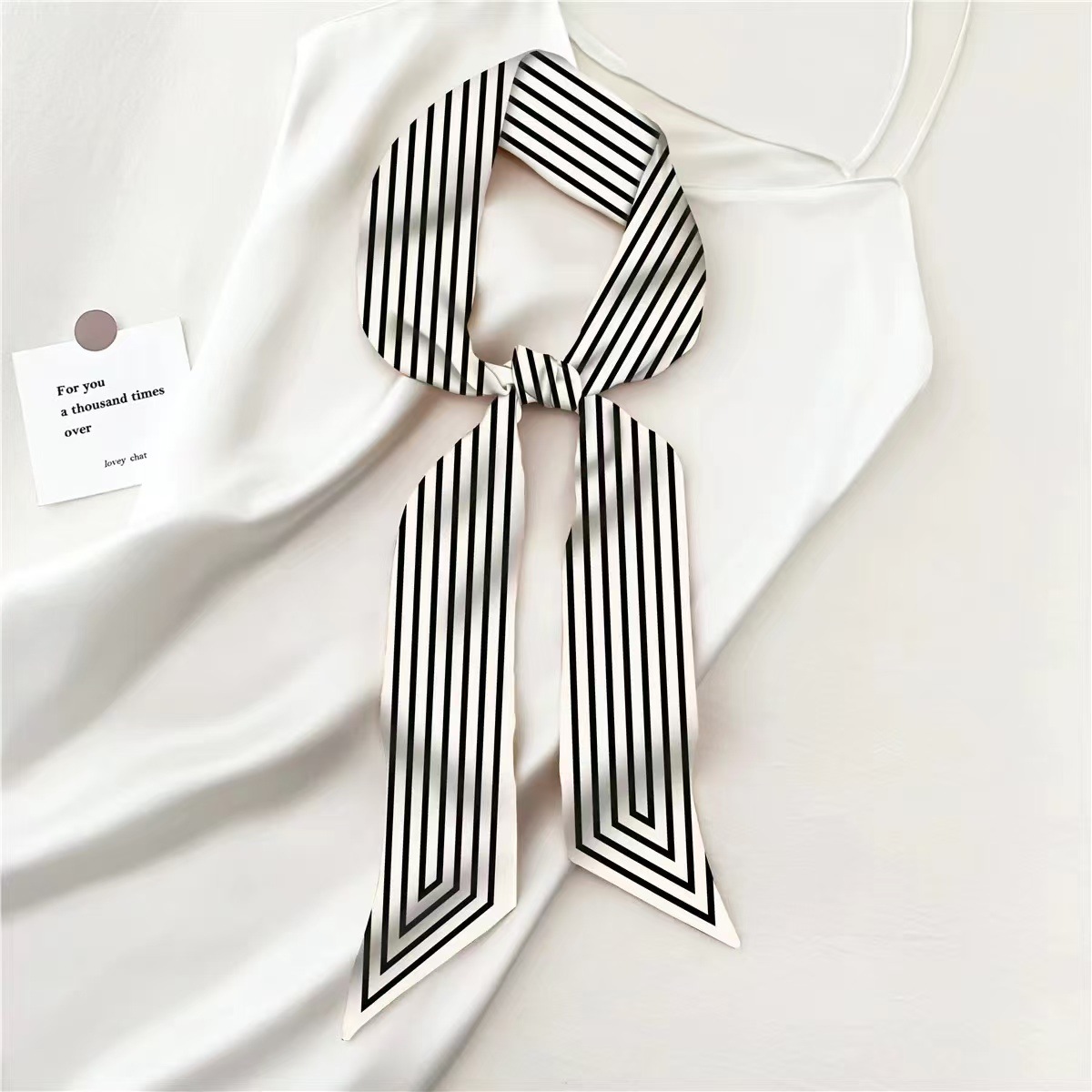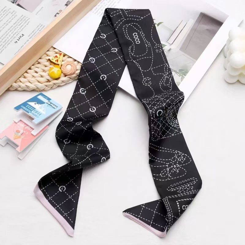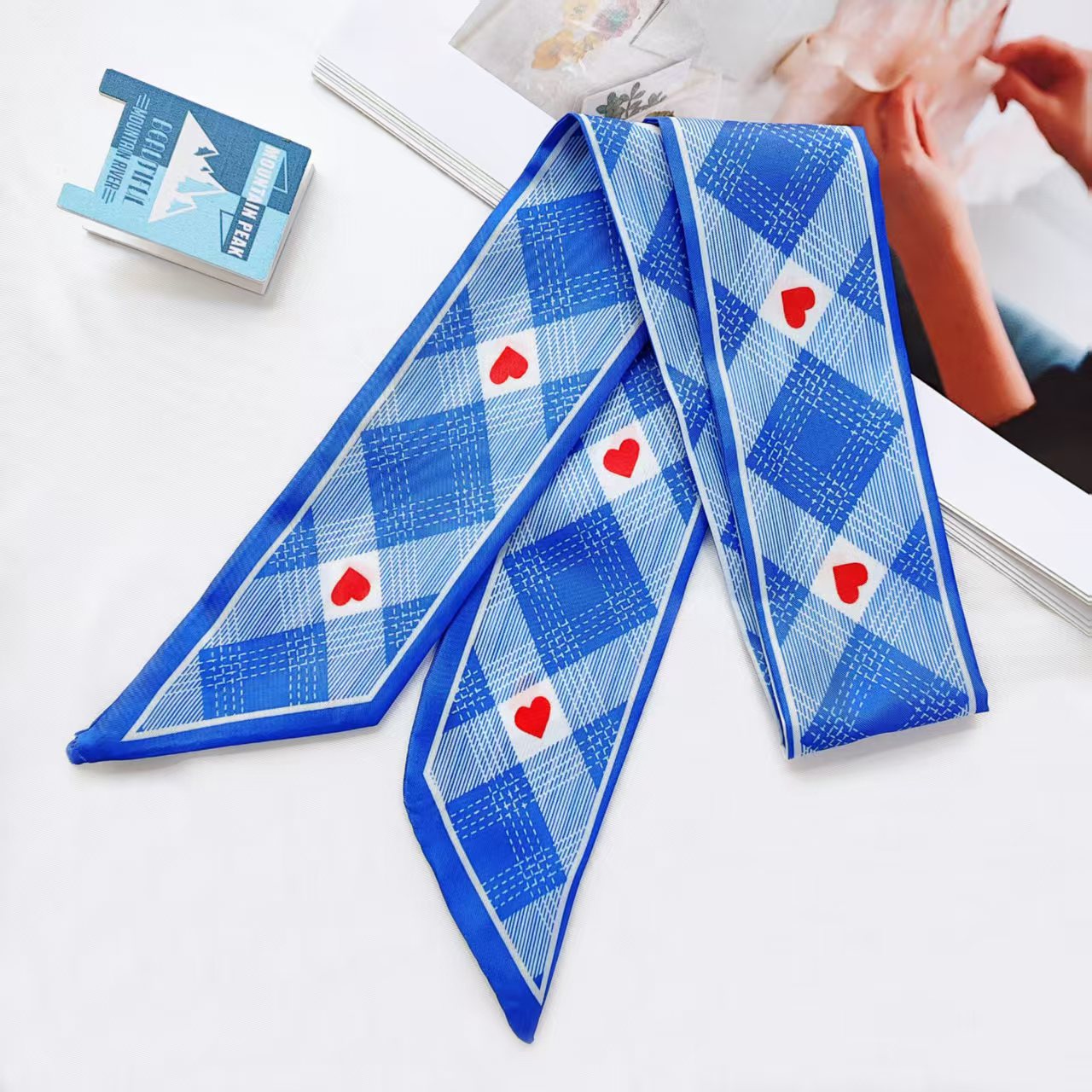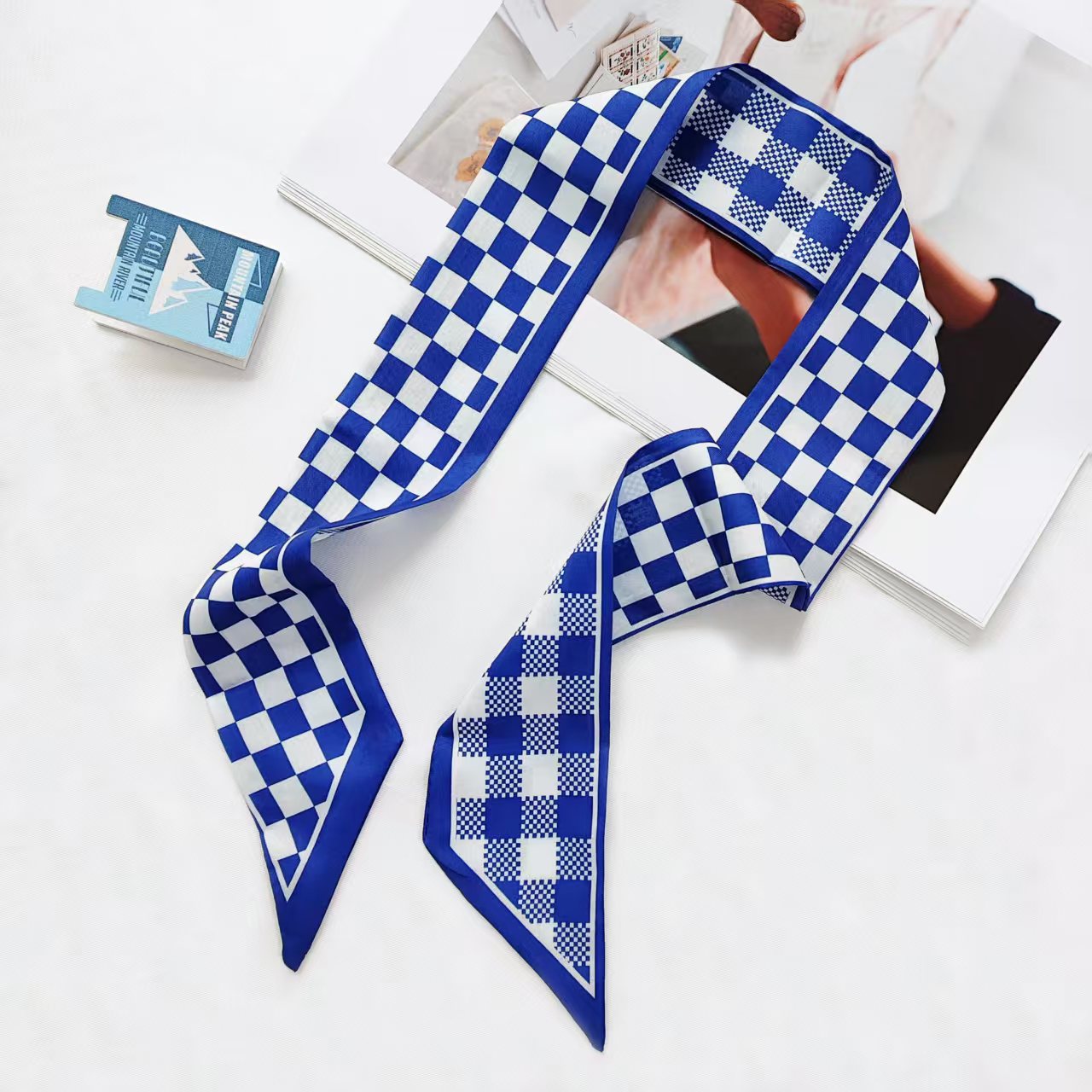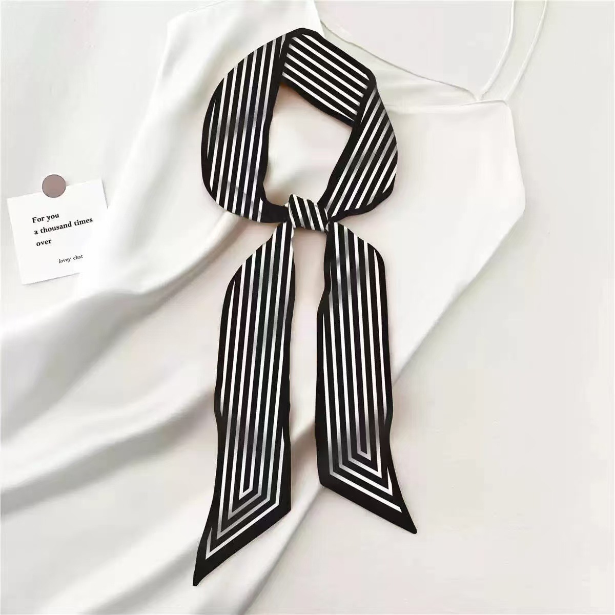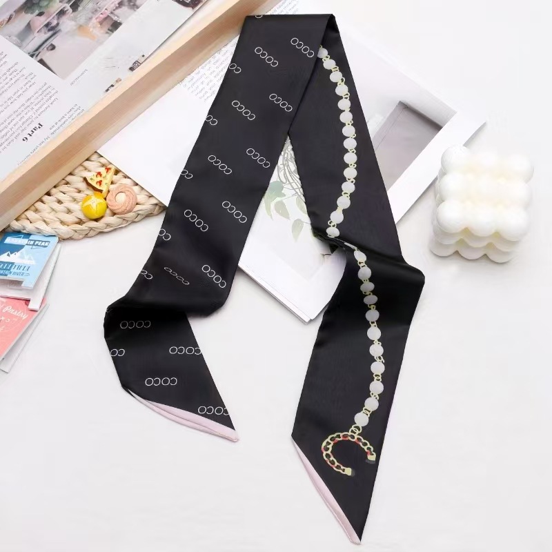 새로운 긴 작은 실크 스카프 헤어 밴드 여성용 양면 우아한 넥타이 가방 리본 작은 스카프 손 선물 리본 스카프
