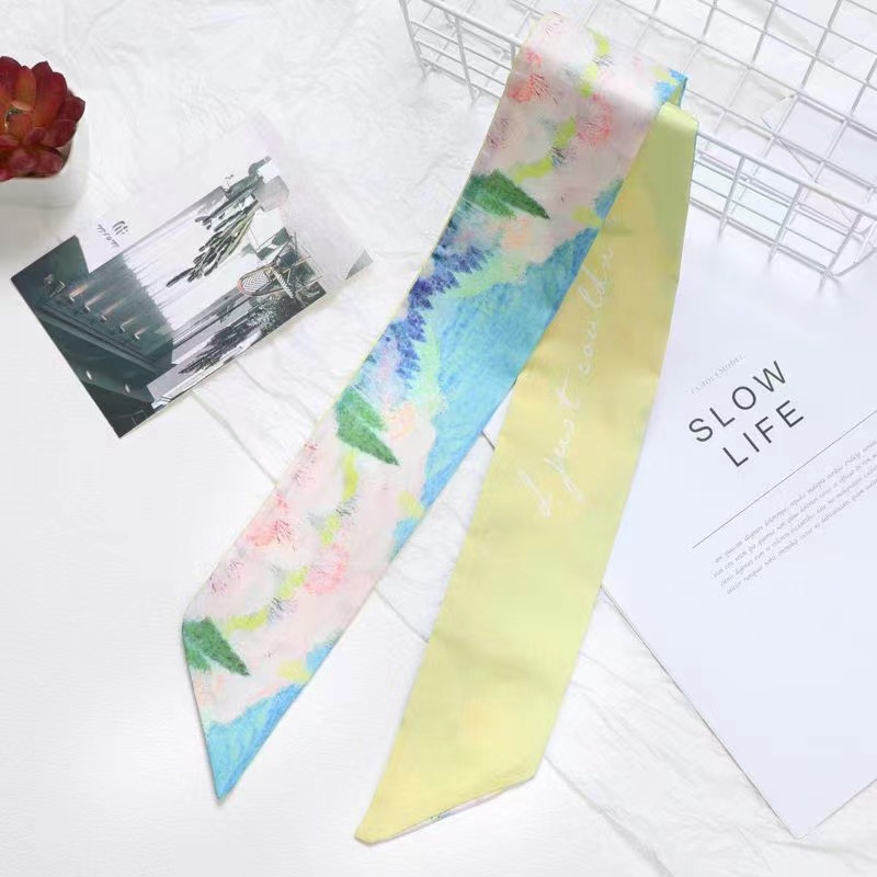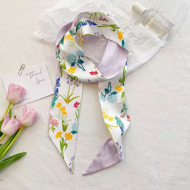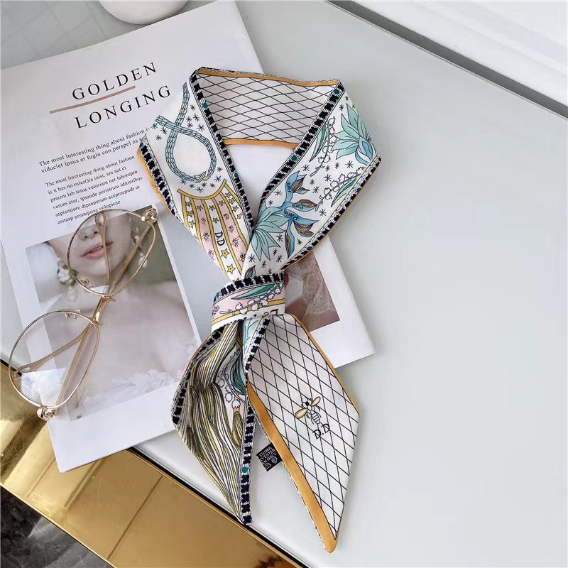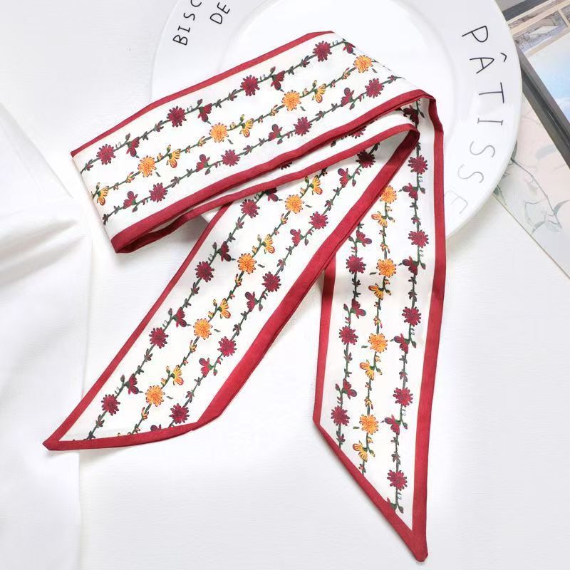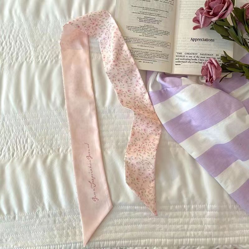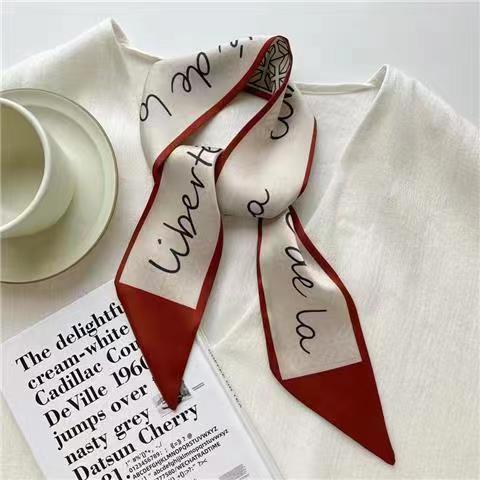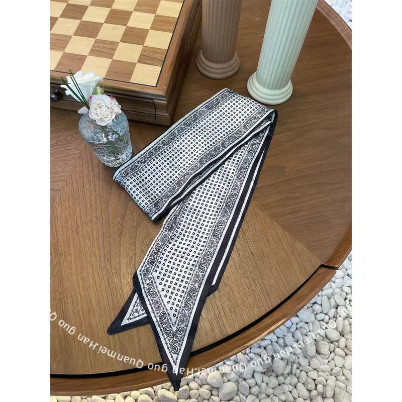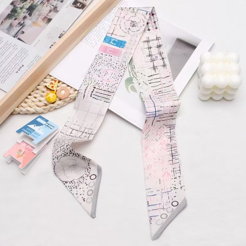 새로운 긴 작은 실크 스카프 헤어 밴드 여성용 양면 우아한 넥타이 가방 리본 작은 스카프 손 선물 리본 스카프