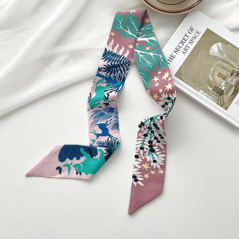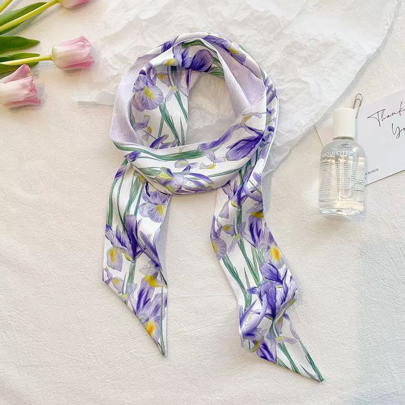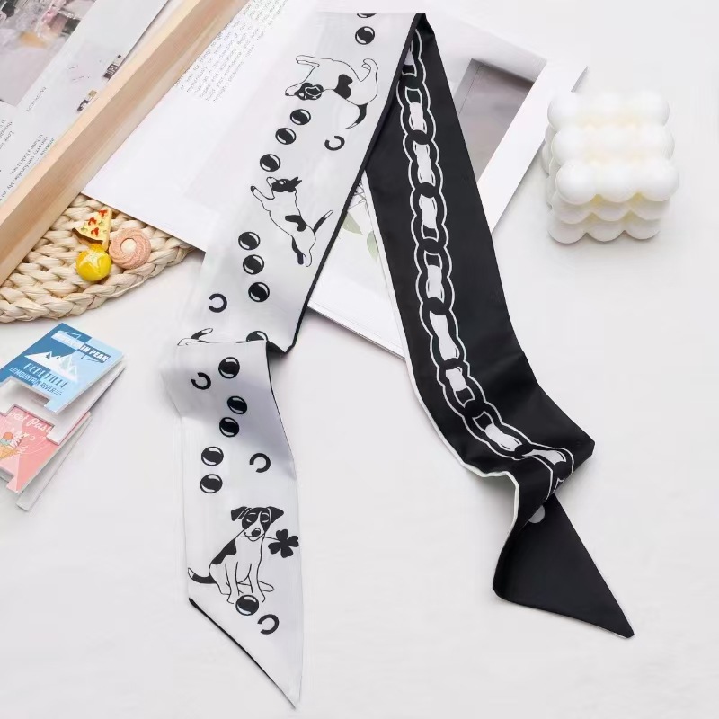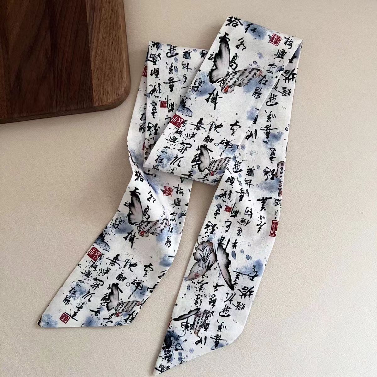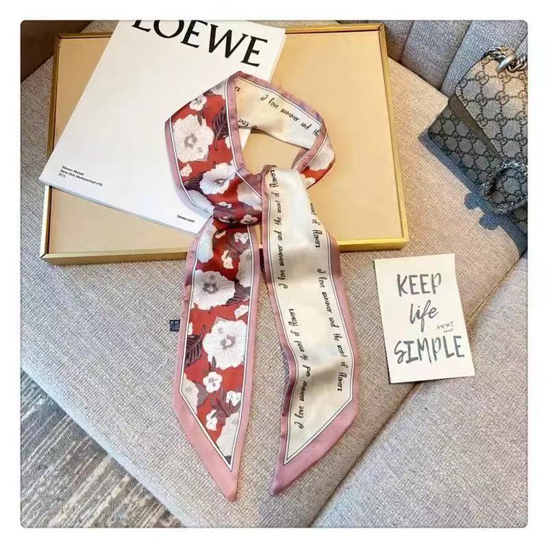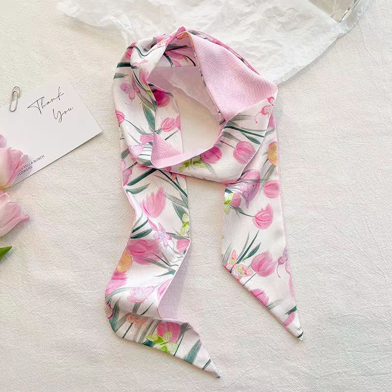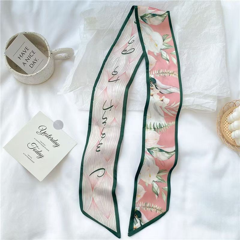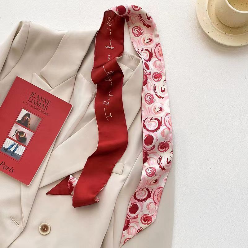새로운 긴 작은 실크 스카프 헤어 밴드 여성용 양면 우아한 넥타이 가방 리본 작은 스카프 손 선물 리본 스카프