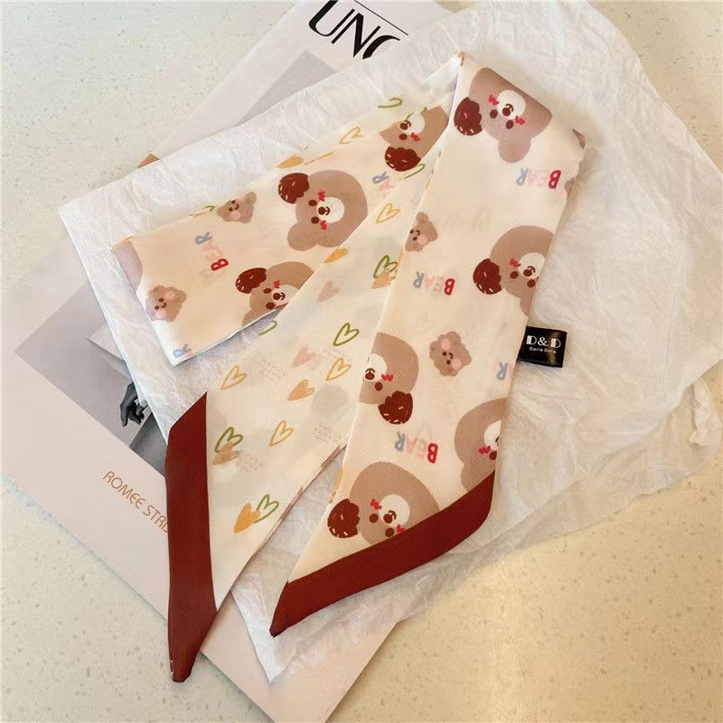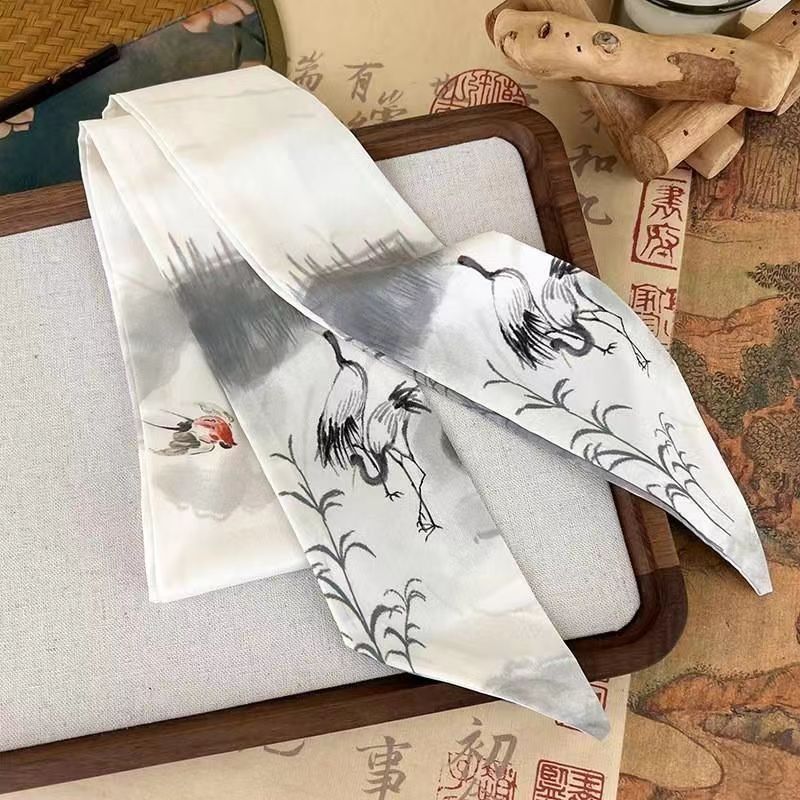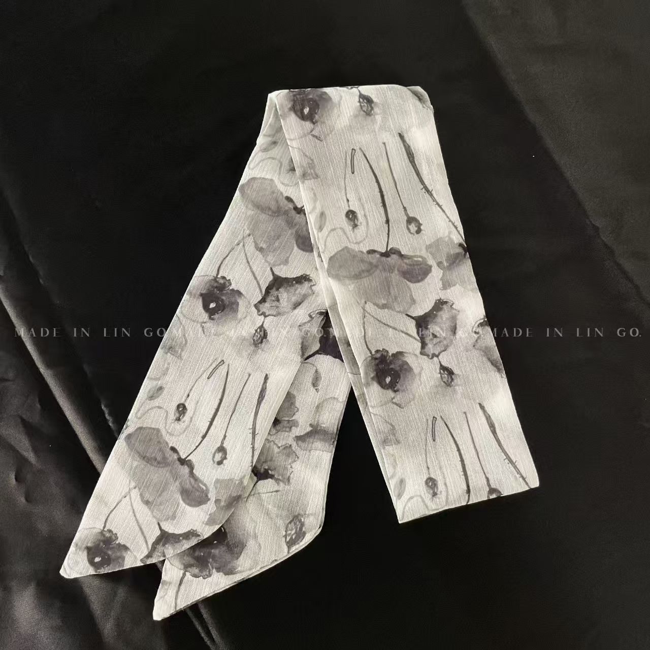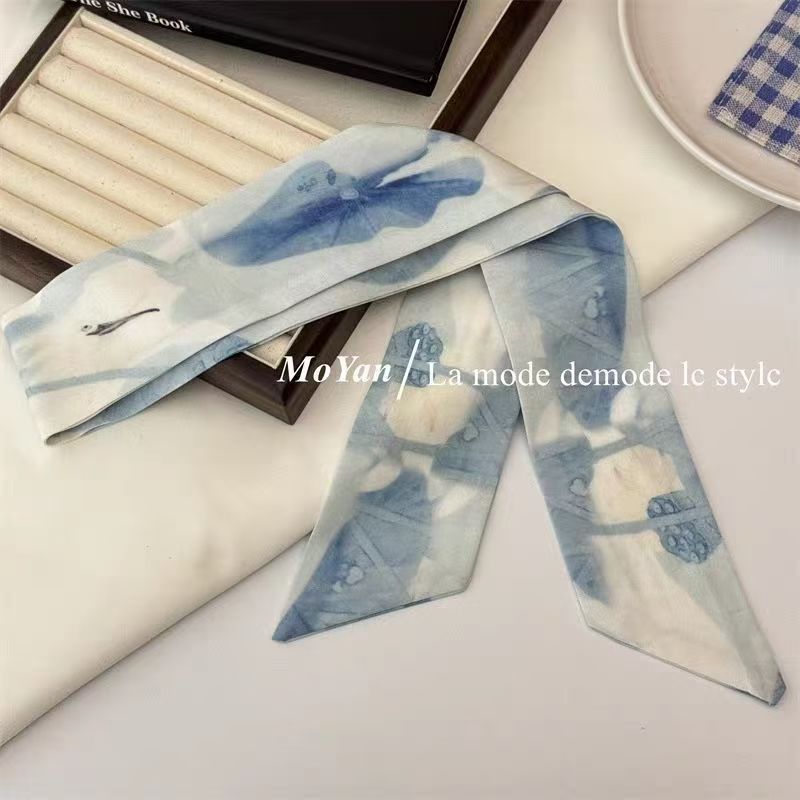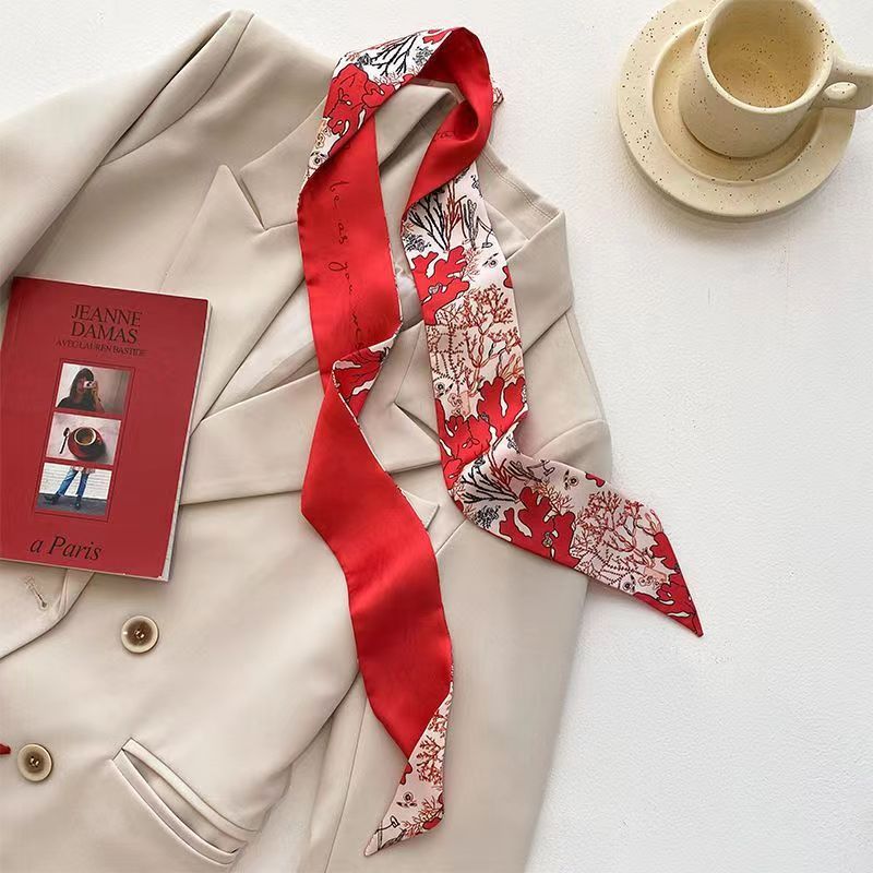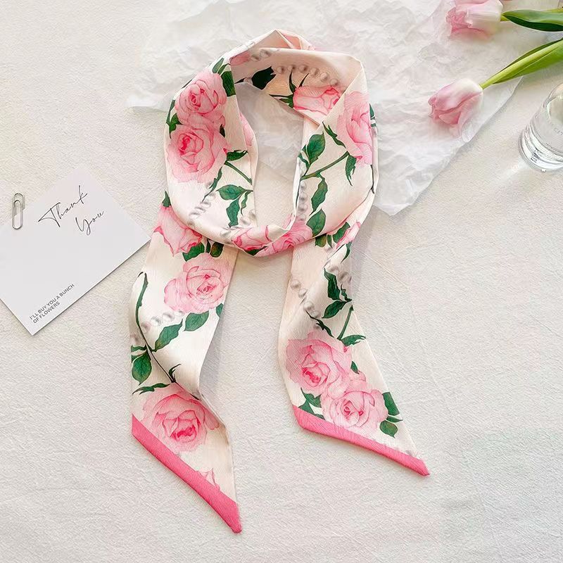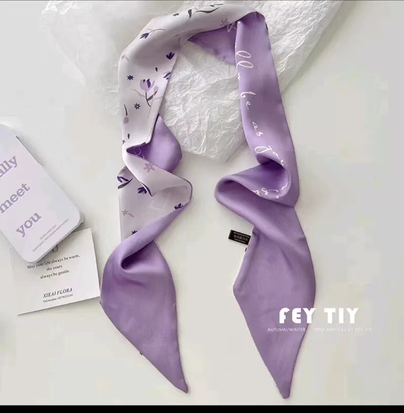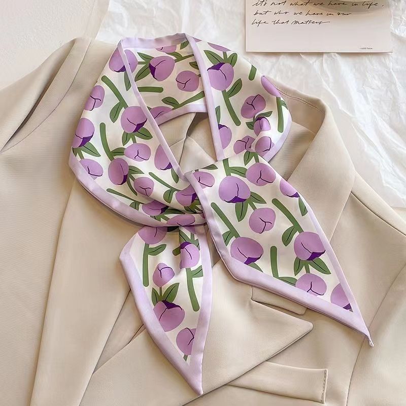 새로운 긴 작은 실크 스카프 헤어 밴드 여성용 양면 우아한 넥타이 가방 리본 작은 스카프 손 선물 리본 스카프