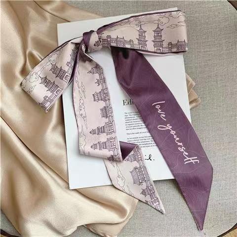 새로운 긴 작은 실크 스카프 헤어 밴드 여성용 양면 우아한 넥타이 가방 리본 작은 스카프 손 선물 리본 스카프스토어 가기