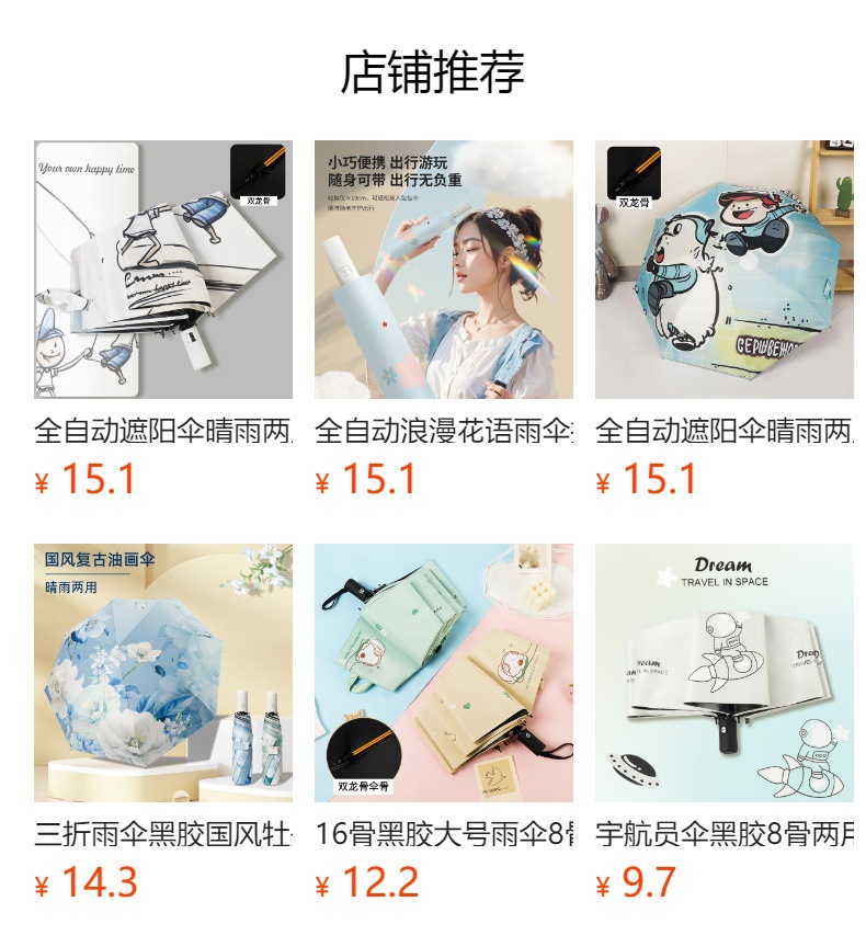 제조사는 많은 수의 자동 차양 우산을 도매합니다 UV 방지 귀여운 8 본 접이식 이중 목적 검은 고무 우산을 비와 빛을위한스토어 가기