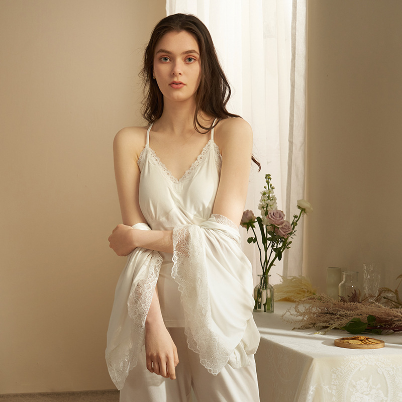 여자 잠옷 봄과 여름 모달 슬링 긴팔 잠옷 3 종 세트 섹시한 레이스 여성의 가정복 가슴 패드