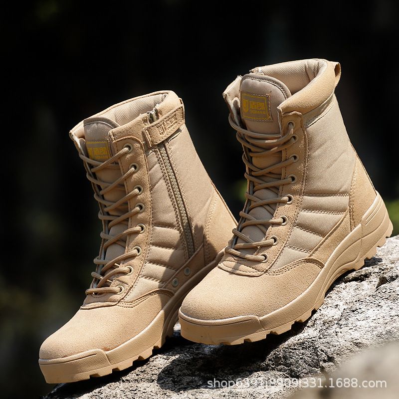 소스 제조 업체 군사 팬 전투 부츠 남성용 하이 탑 사막 전술 부츠 야외 훈련 미끄럼 방지 내마모성 등산 통기성 신발스토어 가기