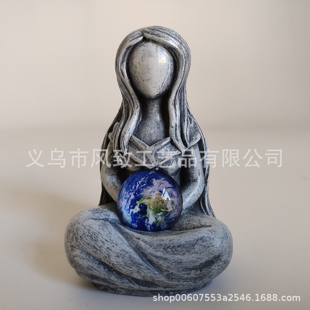 지구의 국경 간 어머니 수지 공예 창조적 인 가이아 여신 동상 가정 거실 장식 소녀 장식스토어 가기