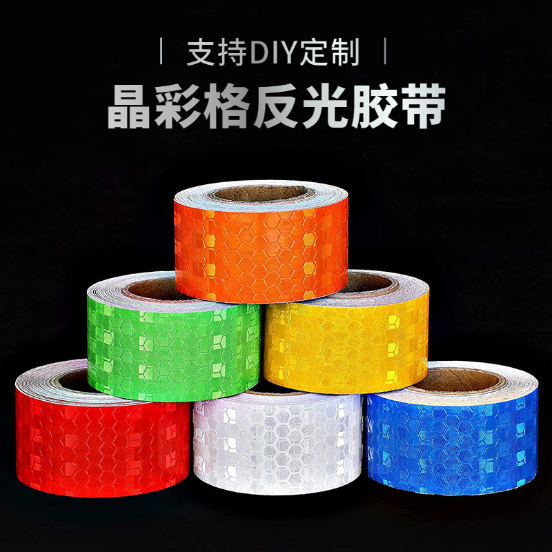 크로스 보더 크리스탈 컬러 격자 반사 테이프 계단 화재 야간 안전 경고 반사 스트립 차체 반사 스티커스토어 가기