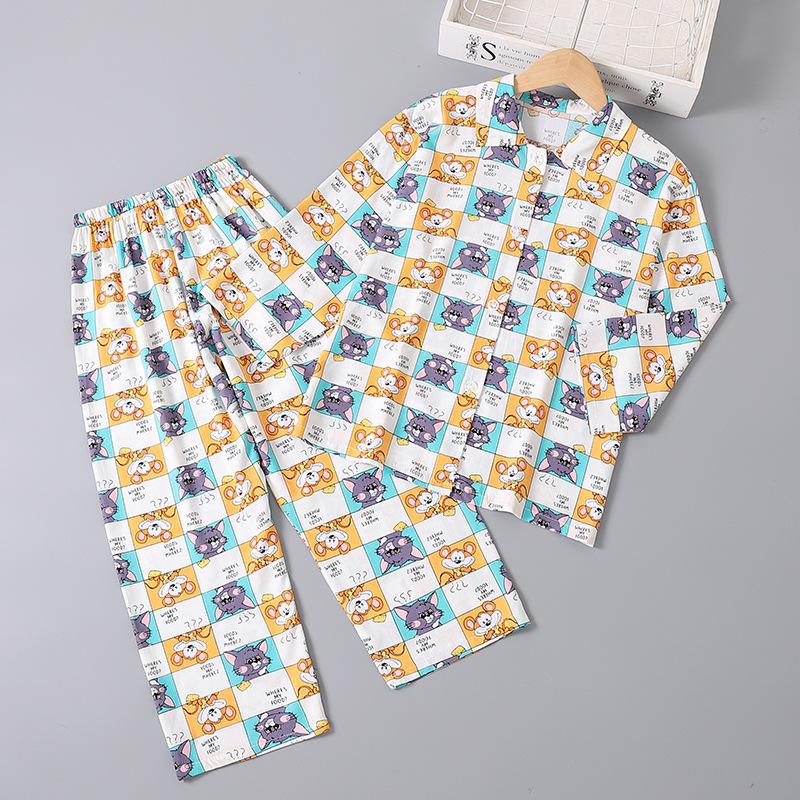 어린이 잠옷 여름 얇은 면 실크 세트 긴팔 어린이 남아 에어컨 옷 아기 면 실크 여아 가정복스토어 가기