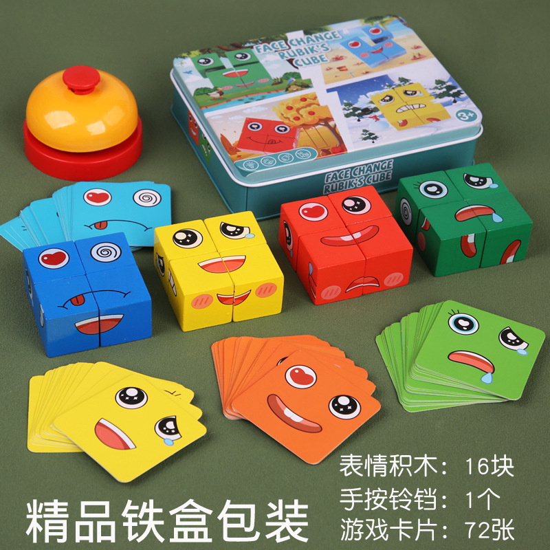 얼굴이 바뀌는 루빅스 큐브 블록 퍼즐, 어린이용 2인용 대결, 부모-자녀 대화형 보드게임, 논리적 사고 훈련 교육용 장난감