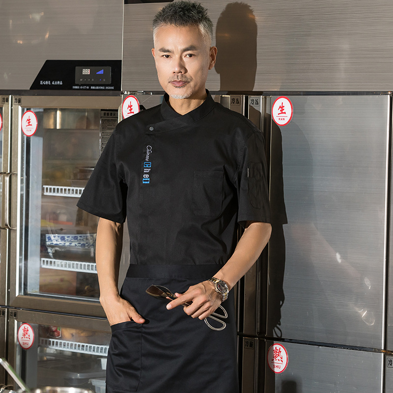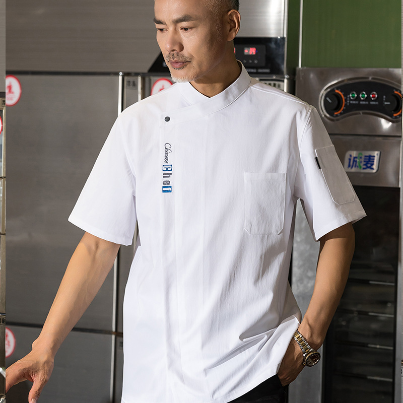 요리사 작업복 남성용 반팔 봄과 여름 흰색 순면 학교 식당 주방 여성 중국 스타일 의류스토어 가기