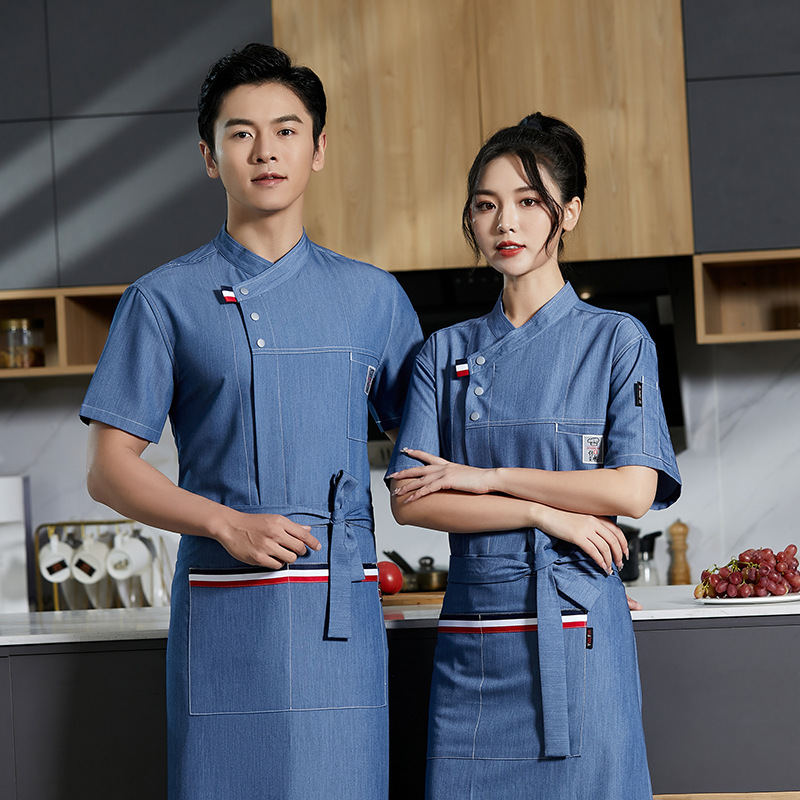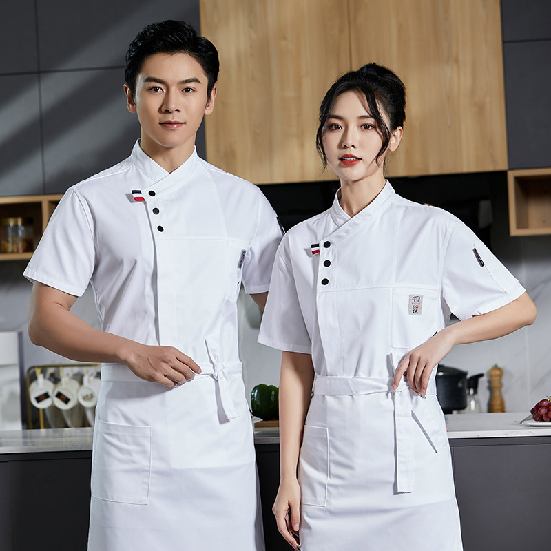 새로운 스타일 요리사 의류 반소매 최고 가을과 겨울 의류 케이터링 호텔 주방 작업복 남성용 흑인 여성 호텔 화이트스토어 가기