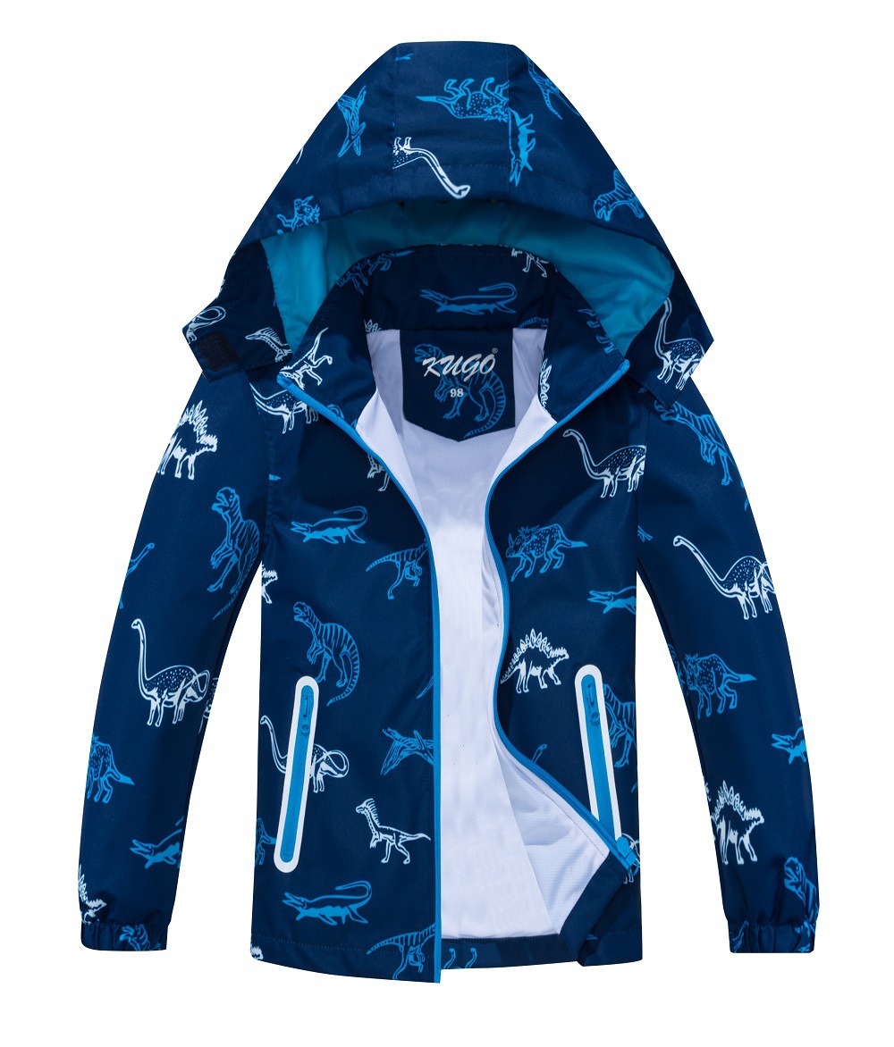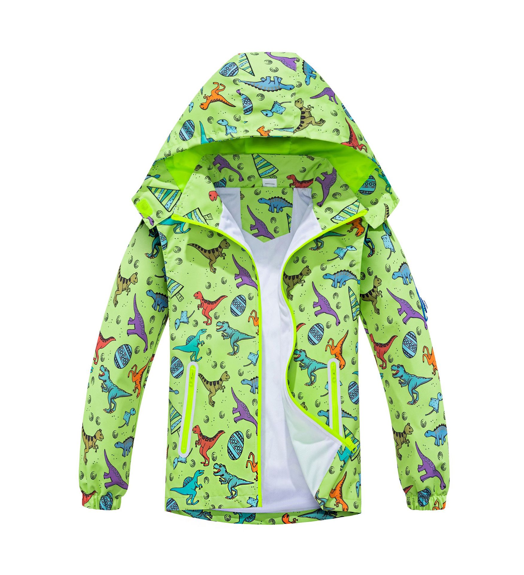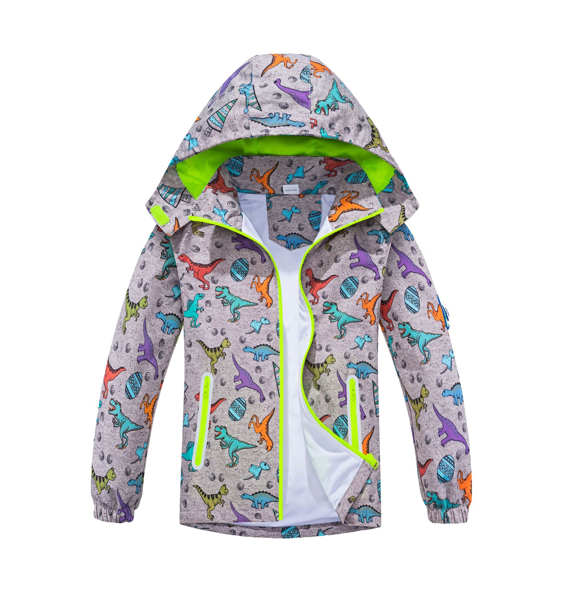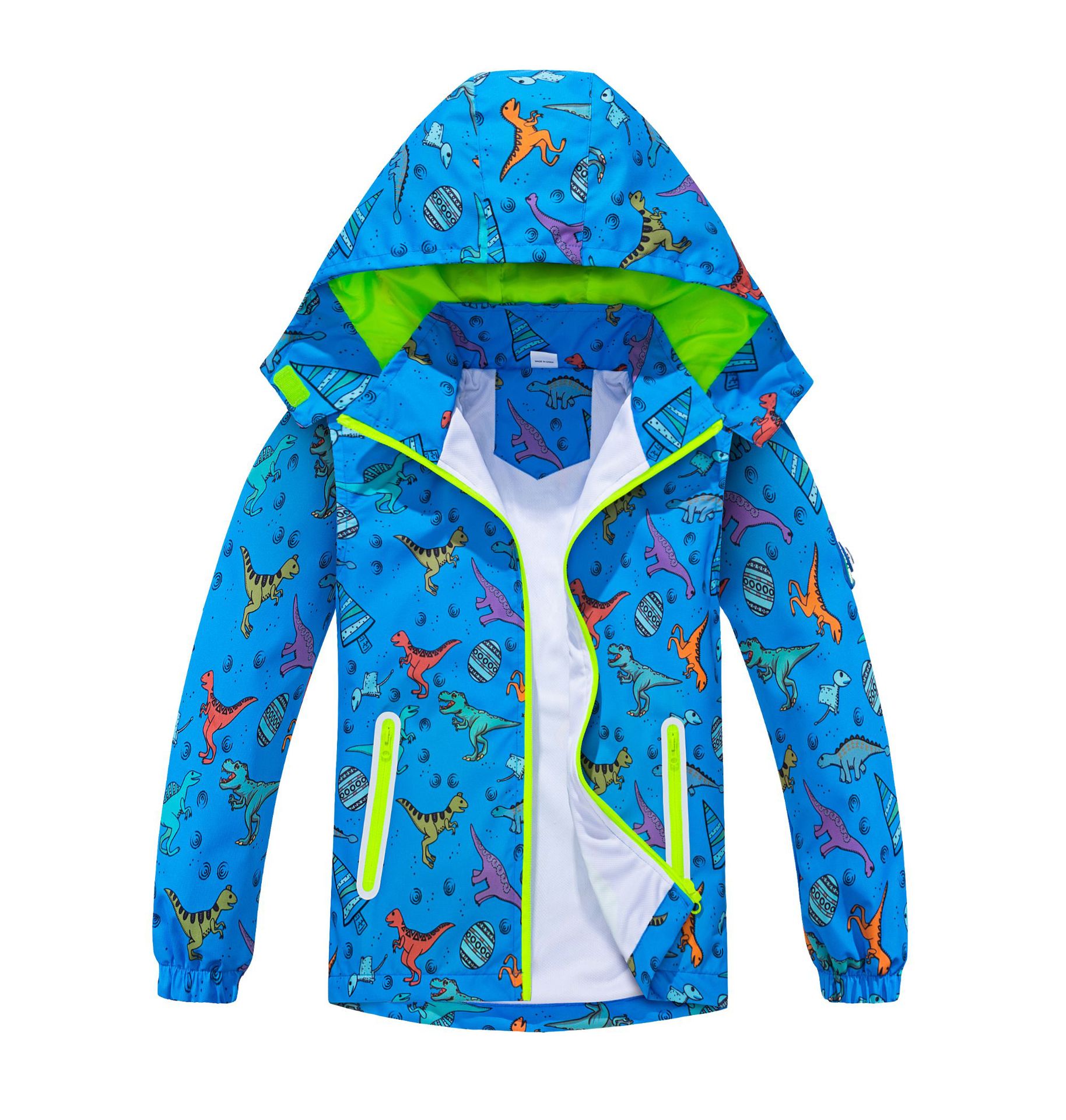 봄과 가을 새로운 소년 소녀 공룡 프린트 그라디언트 컬러 야외 방수 통기성 모자 오프 재킷 지퍼 셔츠스토어 가기