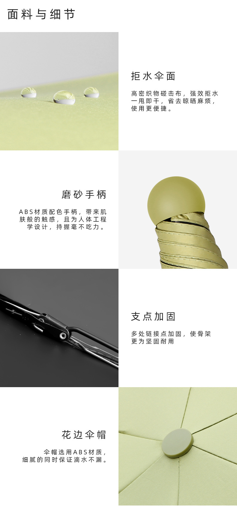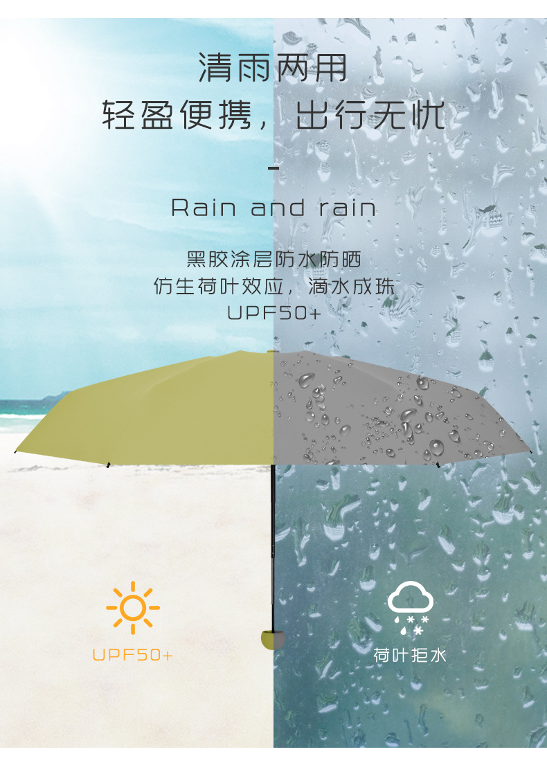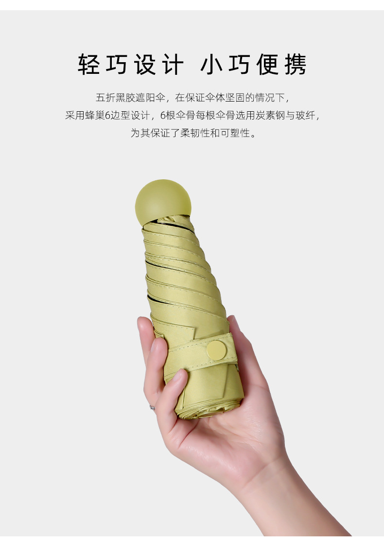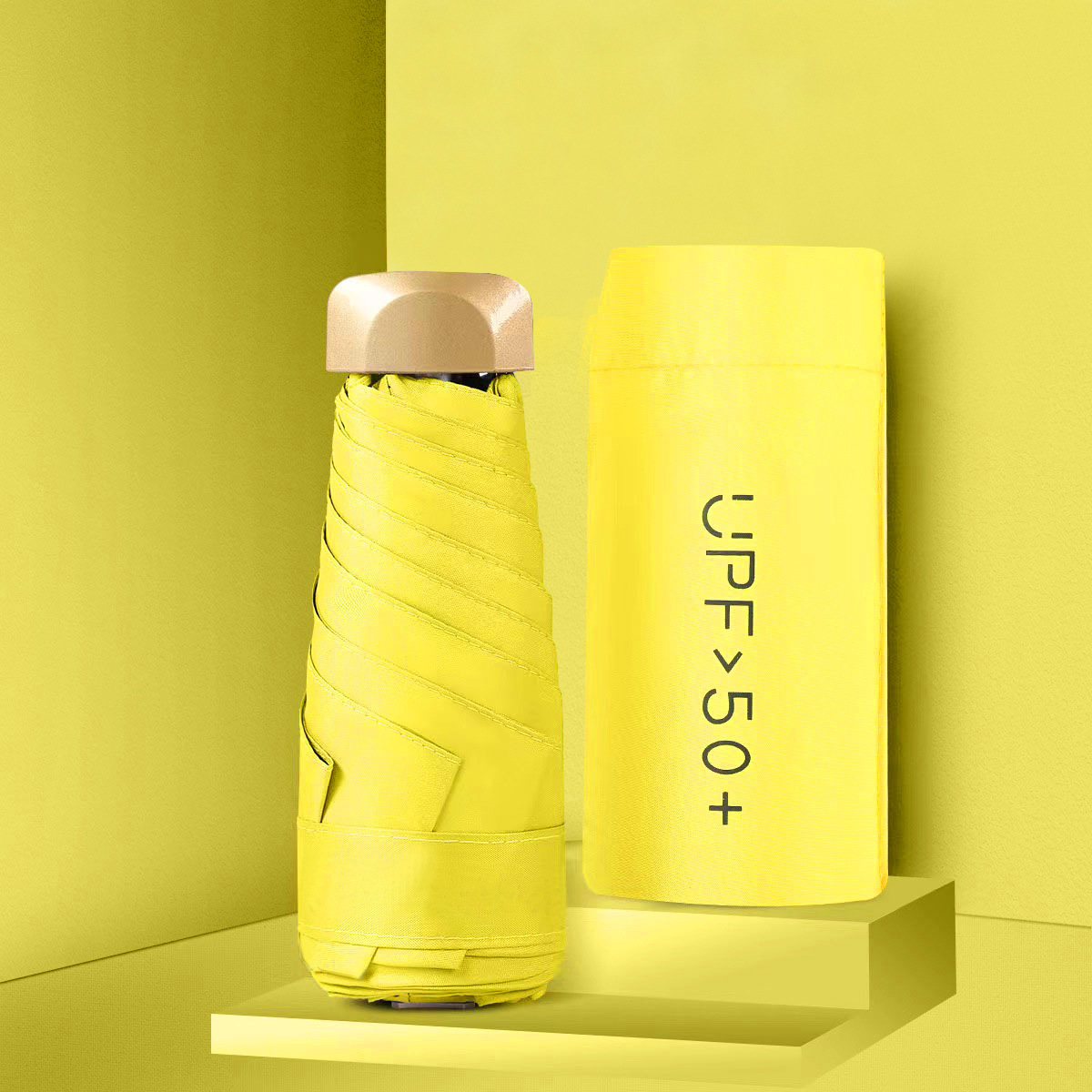 • 납작 6단 6각 우산 - 자연광 레몬 옐로우