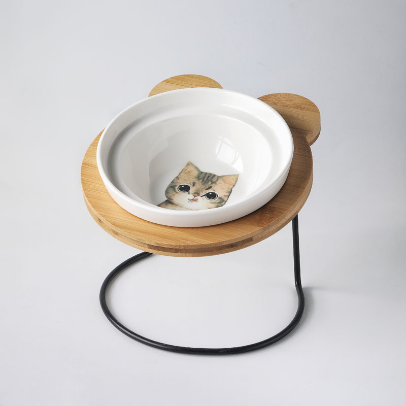 애완 동물 그릇 세라믹 그릇 나무 랙 더블 그릇 고양이 그릇 더블 그릇 더블 음식 분지 잔 그릇 랙 물그릇 대각선 그릇 고양이 음식 그릇스토어 가기