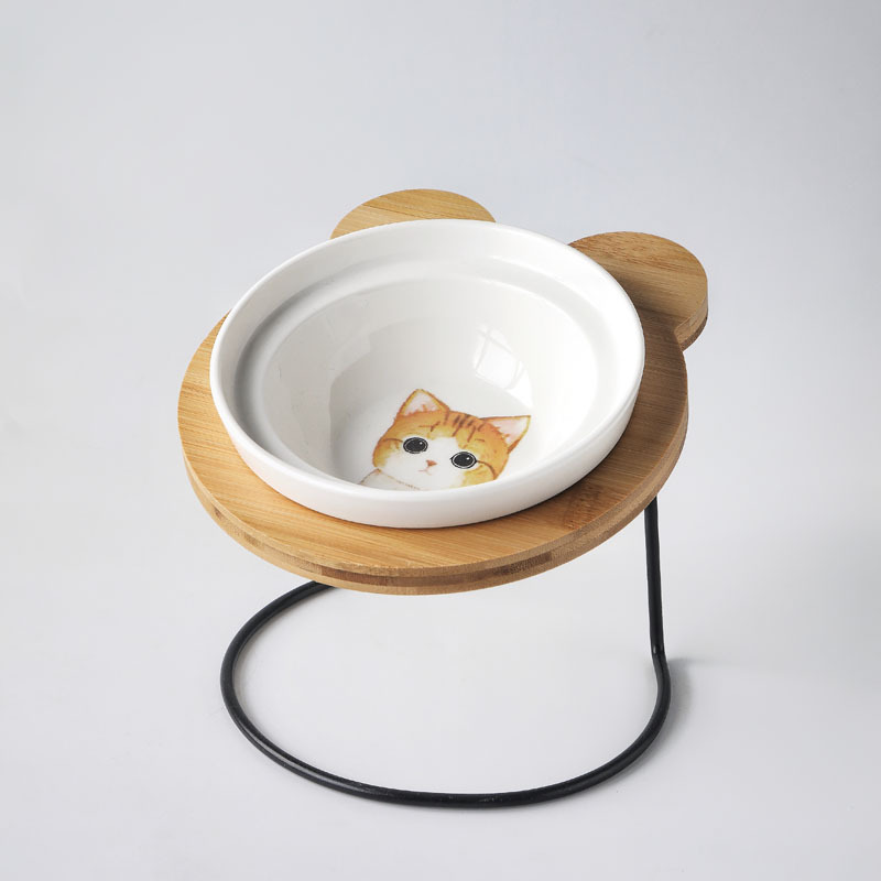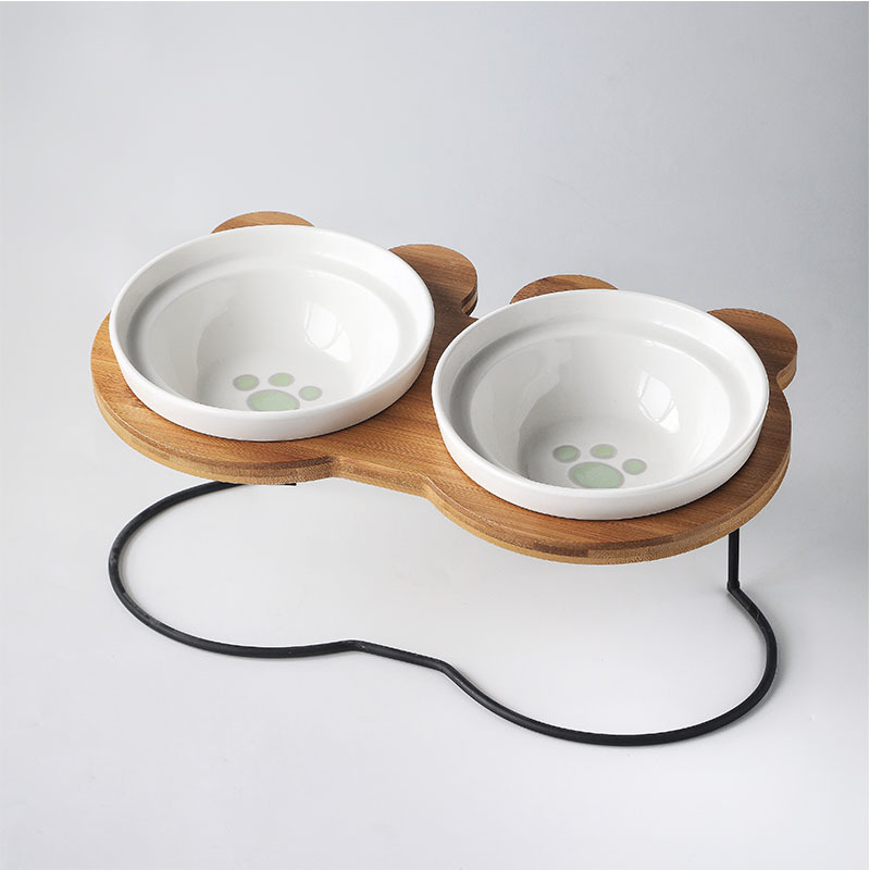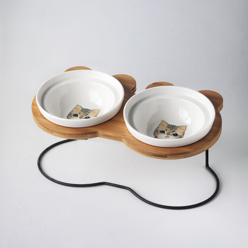 애완 동물 그릇 세라믹 그릇 나무 랙 더블 그릇 고양이 그릇 더블 그릇 더블 음식 분지 잔 그릇 랙 물그릇 대각선 그릇 고양이 음식 그릇