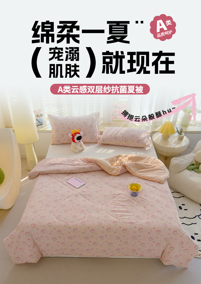 제조업체 도매 클라우드 감촉 이중 거즈 여름 이불 기숙사용 싱글 학생용 얇은 사계절 이불 여름 이불 A급 산모 및 유아용스토어 가기