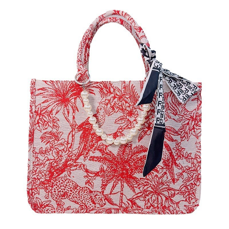 여성 핸드백 호랑이 자수 토트 백 2024 국경 광저우 고품질 통근 진주 숄더 백 도매