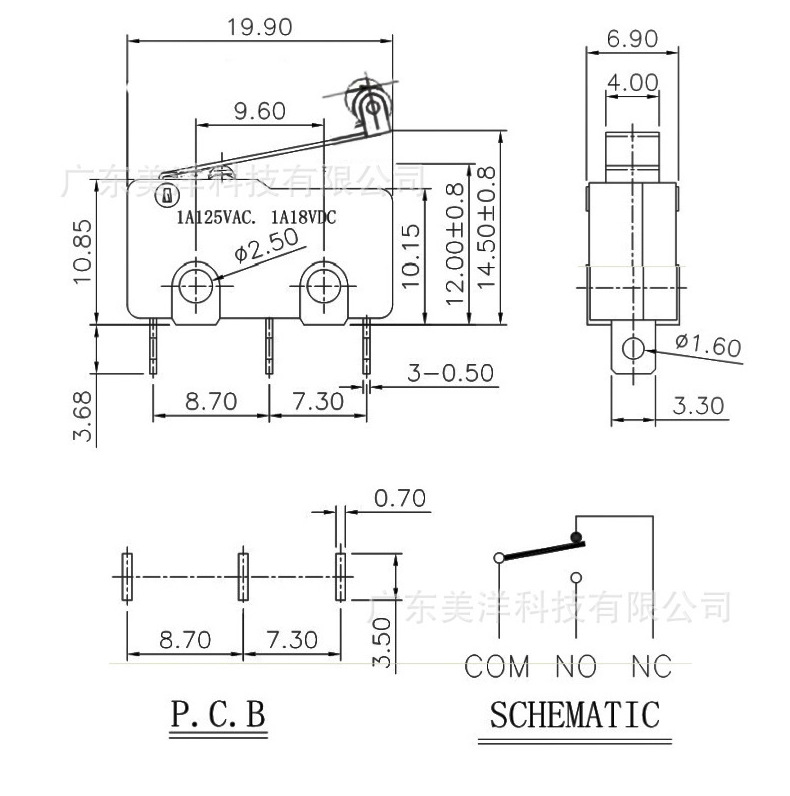 防水微动开关MY-00008-侧三线 医疗设备行程开关户外防水开关批发