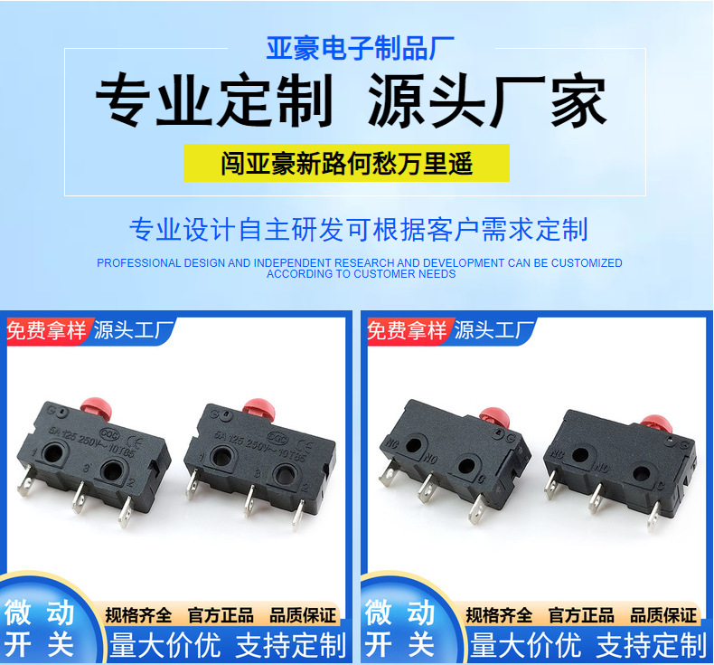 防水中微动开关器械复位行程开关 玩具水枪直柄行程开关 厂家直供