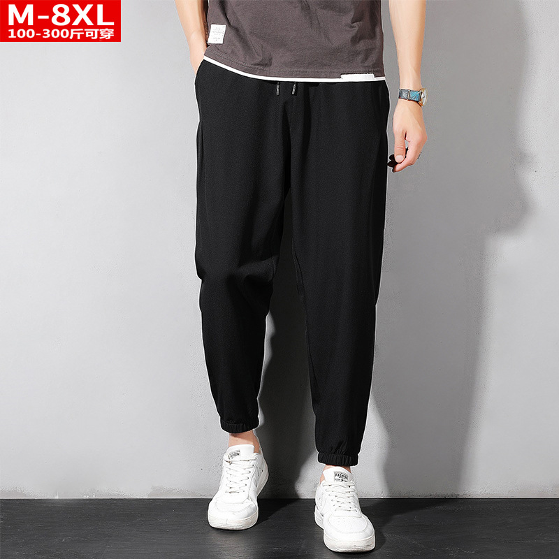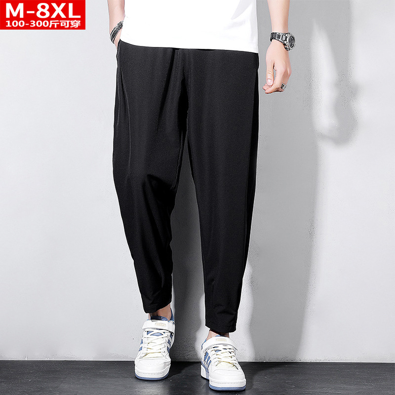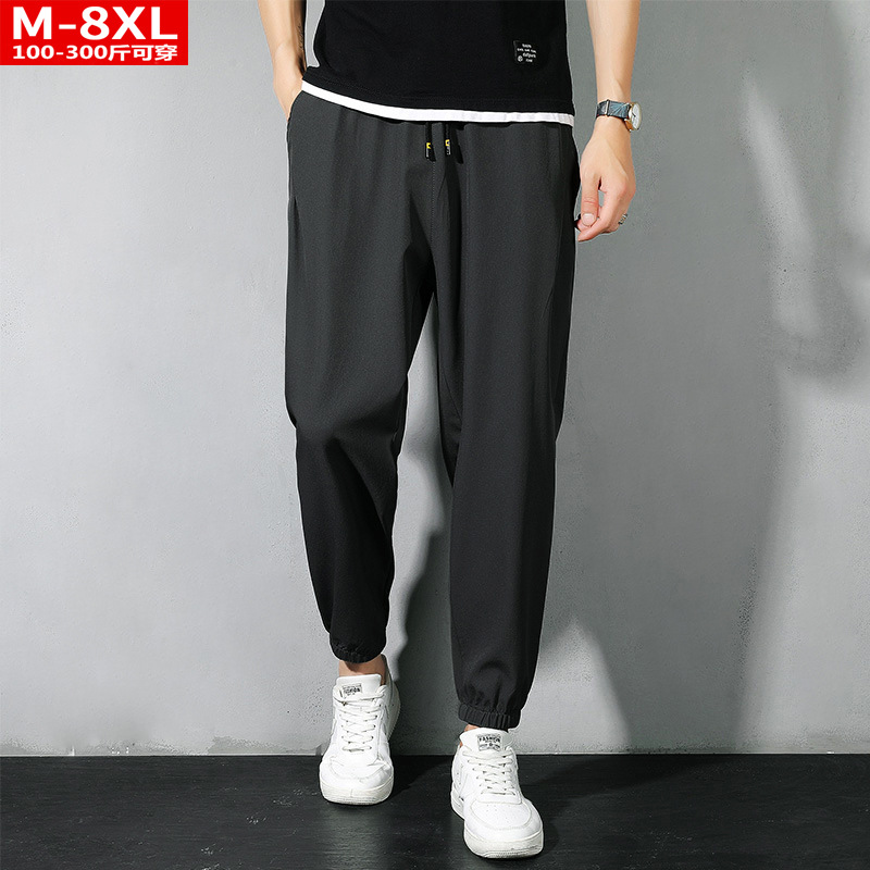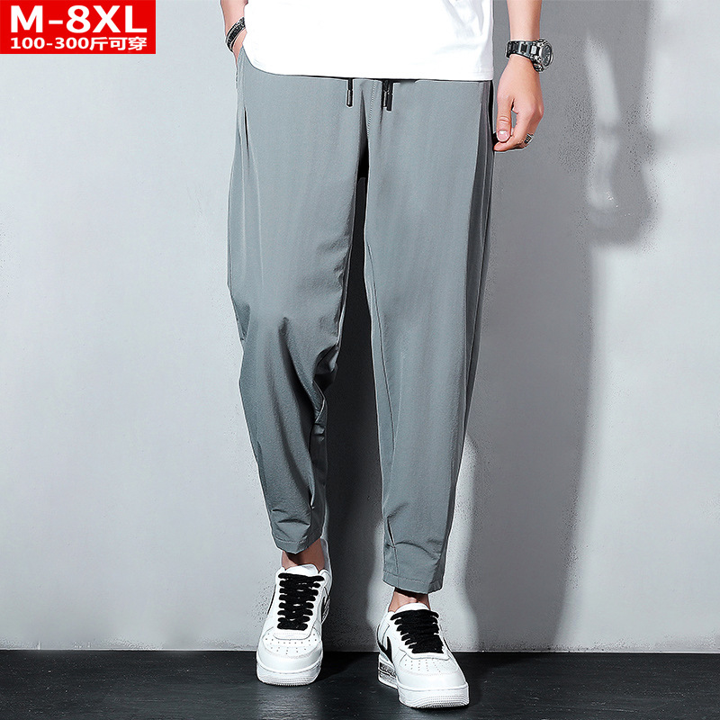 여름 유행 남성 통기성 얇은 아이스 실크 발목 길이 바지 통통한 대형 플러스 뚱뚱한 느슨한 스포츠 캐주얼 Harlan 발목 바지스토어 가기