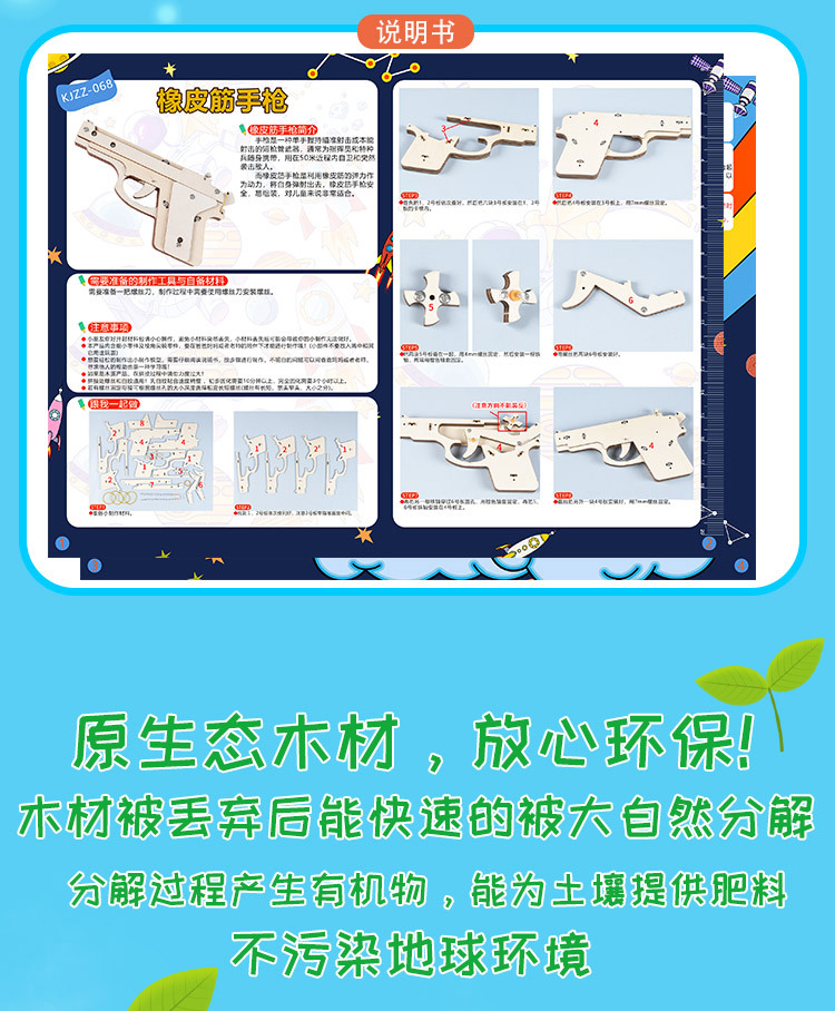 과학 기술 소량 생산 DIY 고무 밴드 권총 초등학교 학생 작은 창조적 인 손으로 조립 발명 퍼즐 과학 및 교육 완구스토어 가기