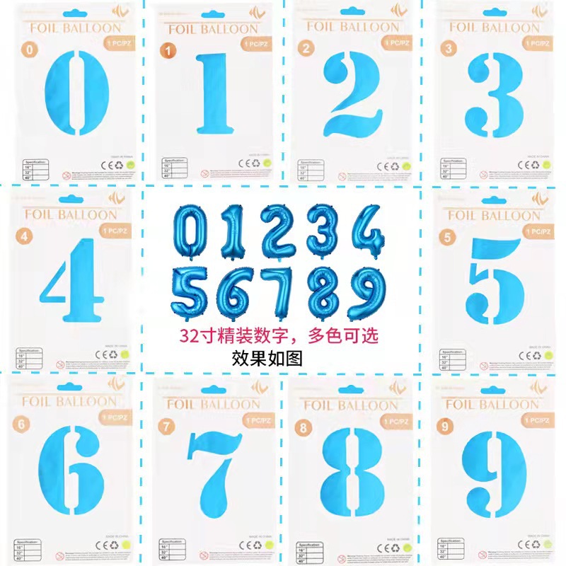 32 인치 디지털 풍선 판지 포장 생일 장식 0-9 개별 포장 디지털 알루미늄 필름 풍선 도매스토어 가기