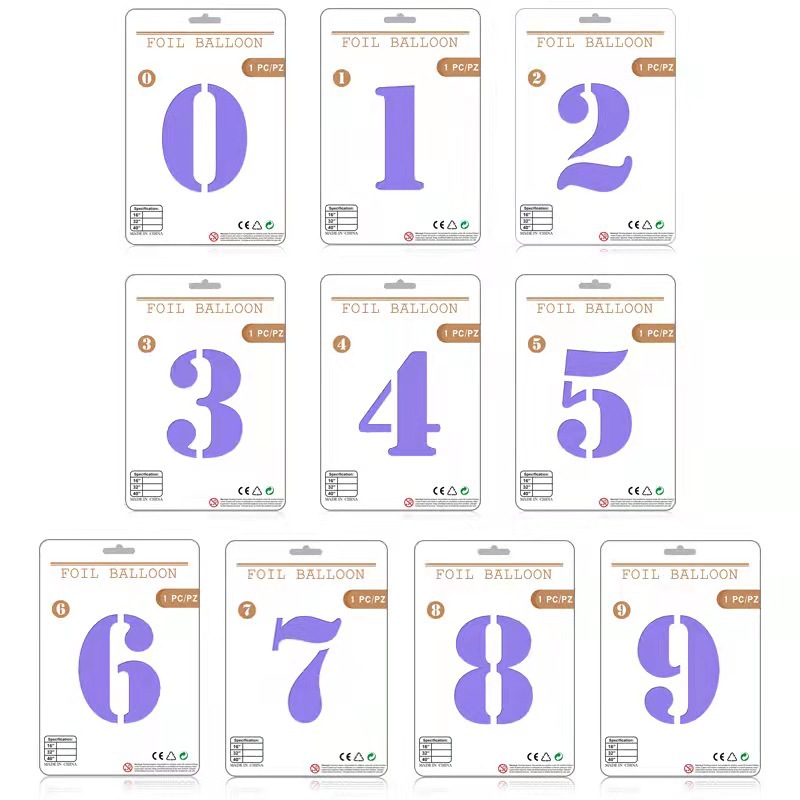 32 인치 디지털 풍선 판지 포장 생일 장식 0-9 개별 포장 디지털 알루미늄 필름 풍선 도매
