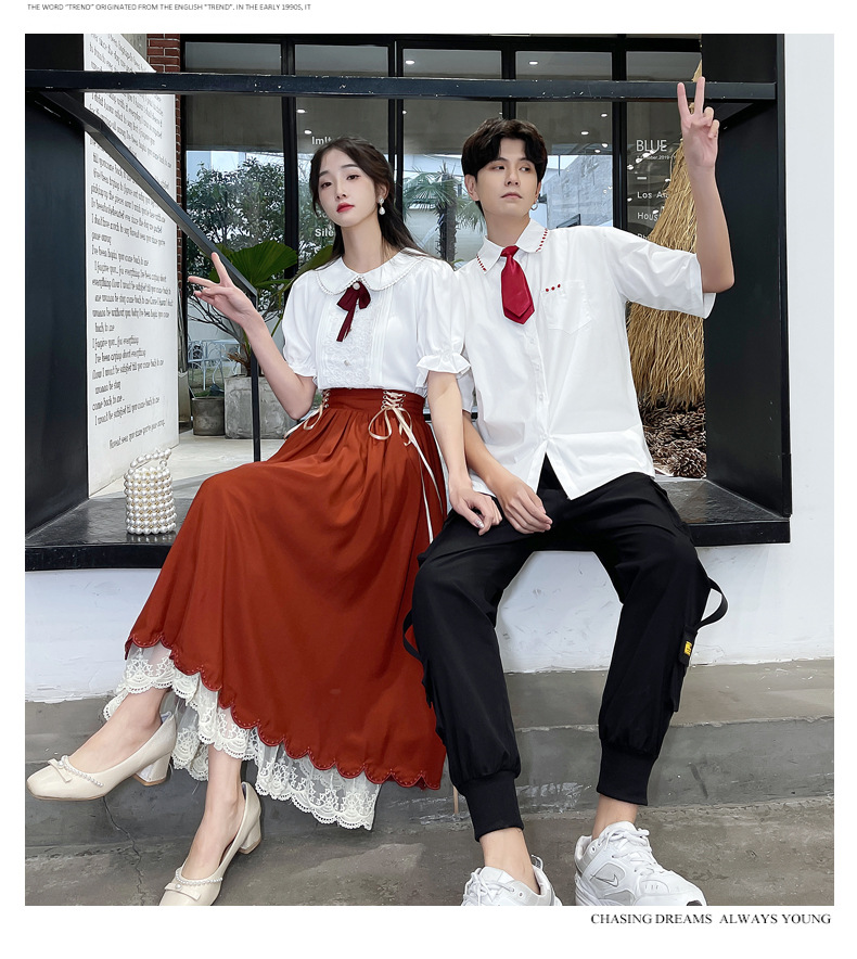 2022 여름 새 커플 의류 반팔 대학 스타일 셔츠 여성용 스커트 에스닉 스타일 교복