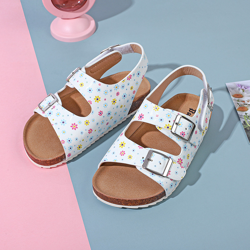 여아 샌들 2024 여름 한국 스타일 부드러운 밑창 미끄럼 방지 코르크 여아 샌들 트렌디 어린이 해외 무역 비치 슈즈