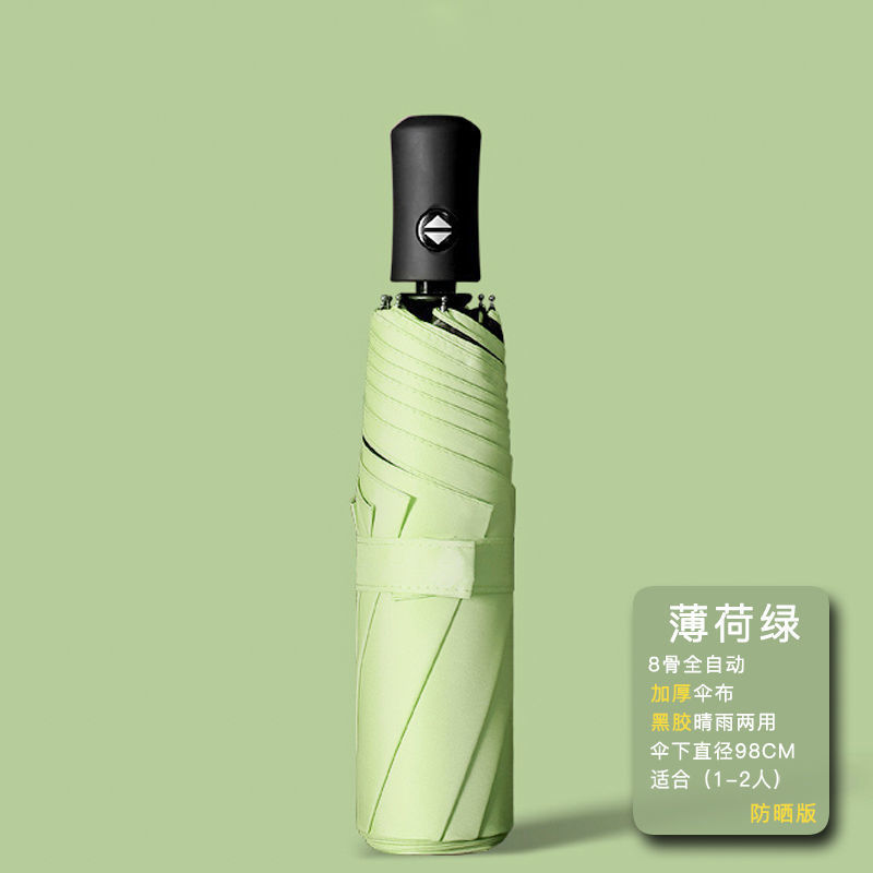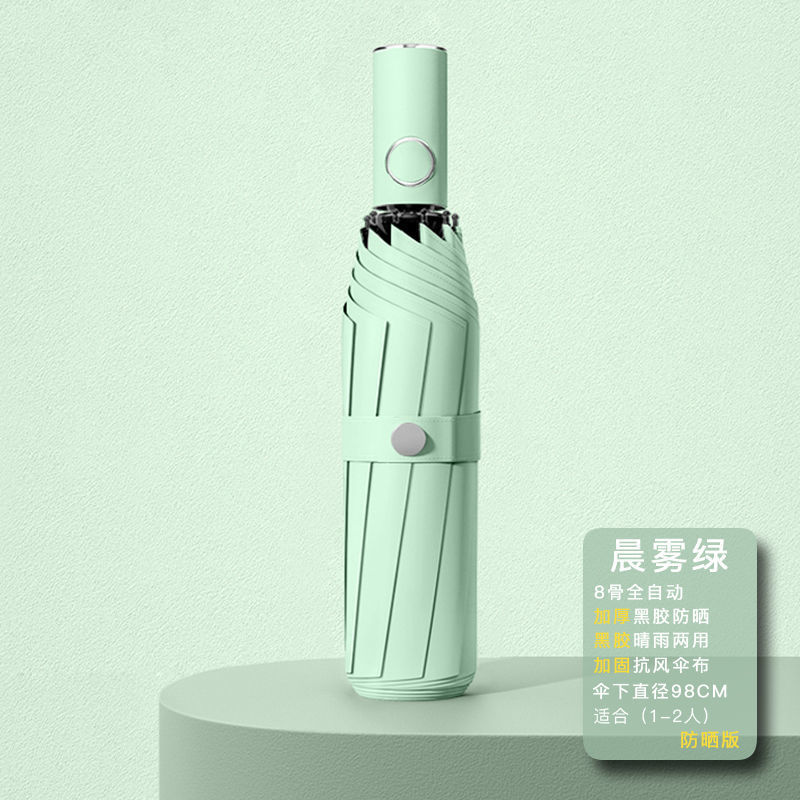 • [자동 업그레이드] 8 본 검정 고무 우산 아침 안개 그린