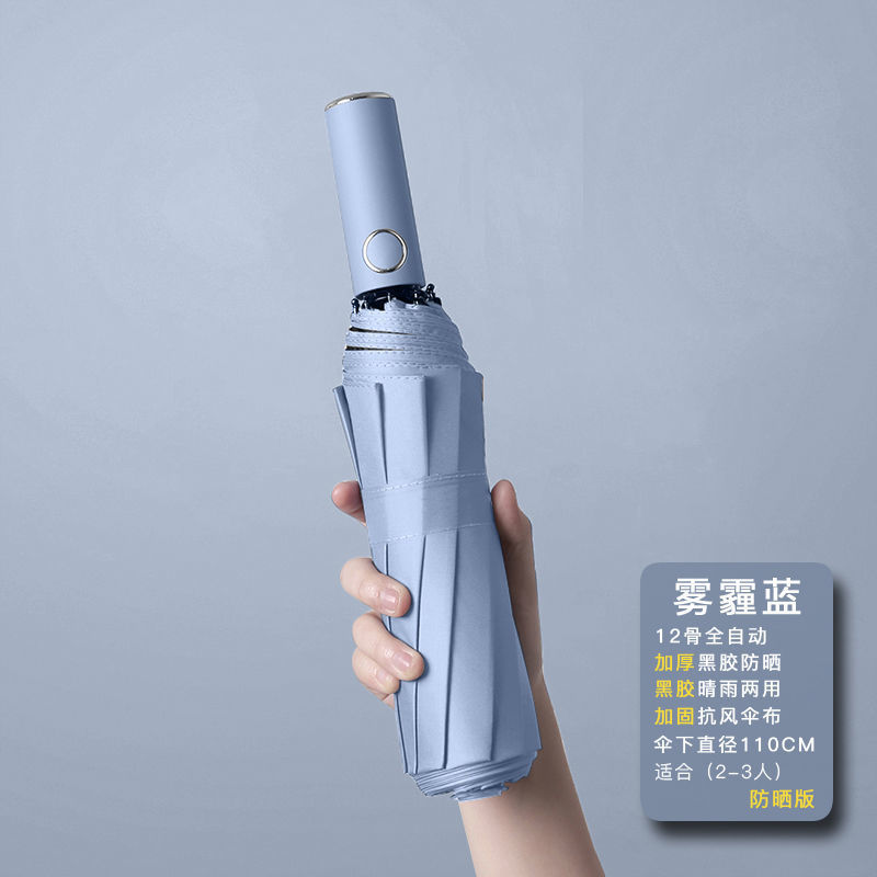 • [업그레이드 자동] 12 본 블랙 접착제 우산 헤이즈 블루
