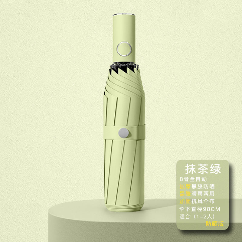 • [자동 업그레이드] 8 본 검정 고무 우산 말차 그린