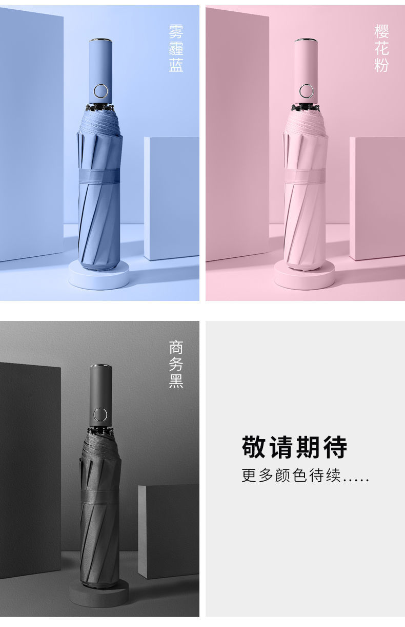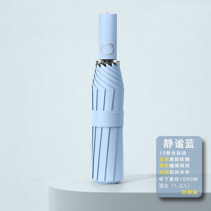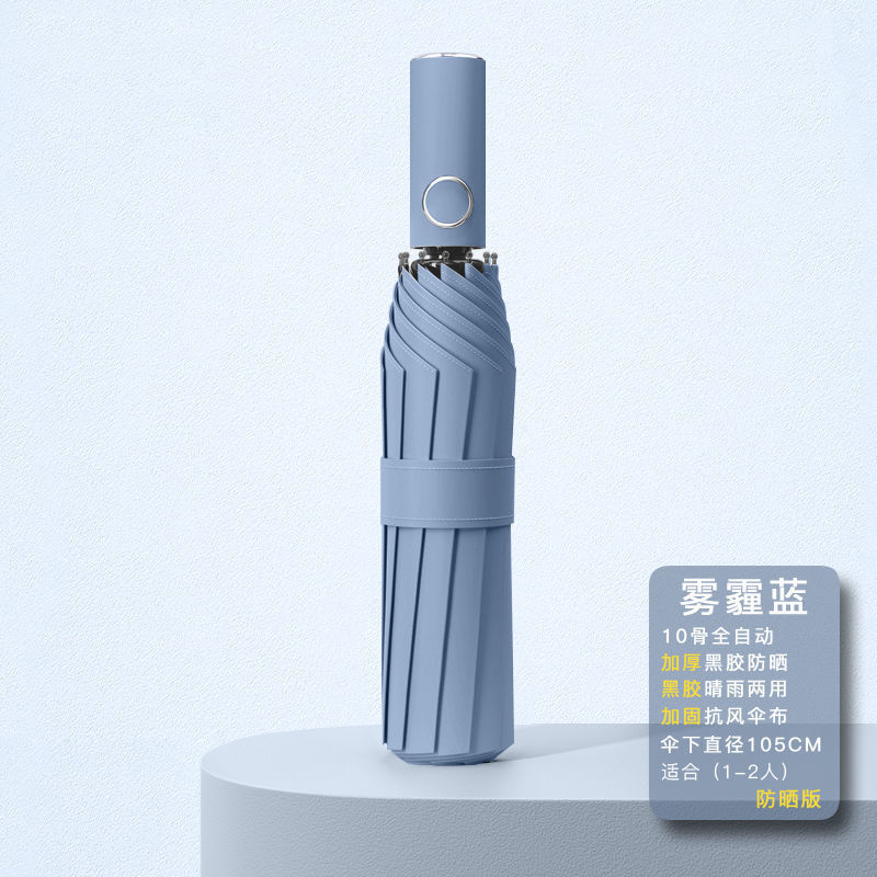 • [자동 업그레이드] 10 본 블랙 접착제 우산 헤이즈 블루