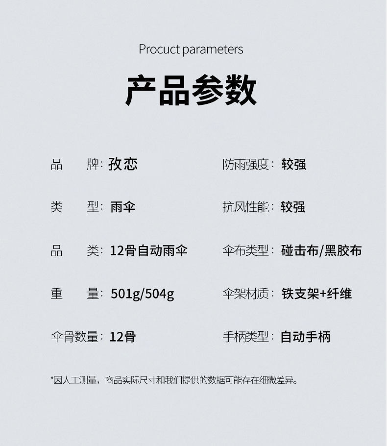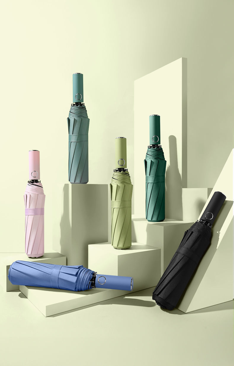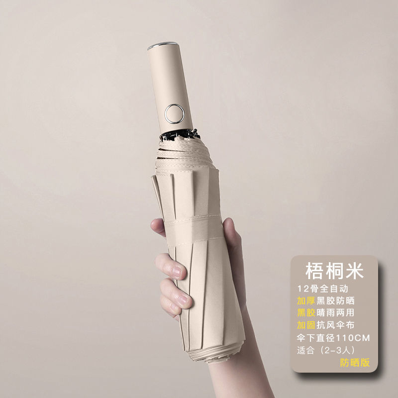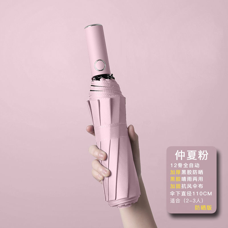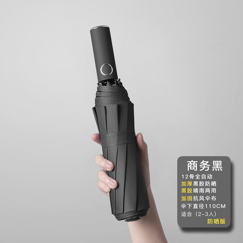 • [자동 업그레이드] 12 본 블랙 고무 우산 한여름 파우더