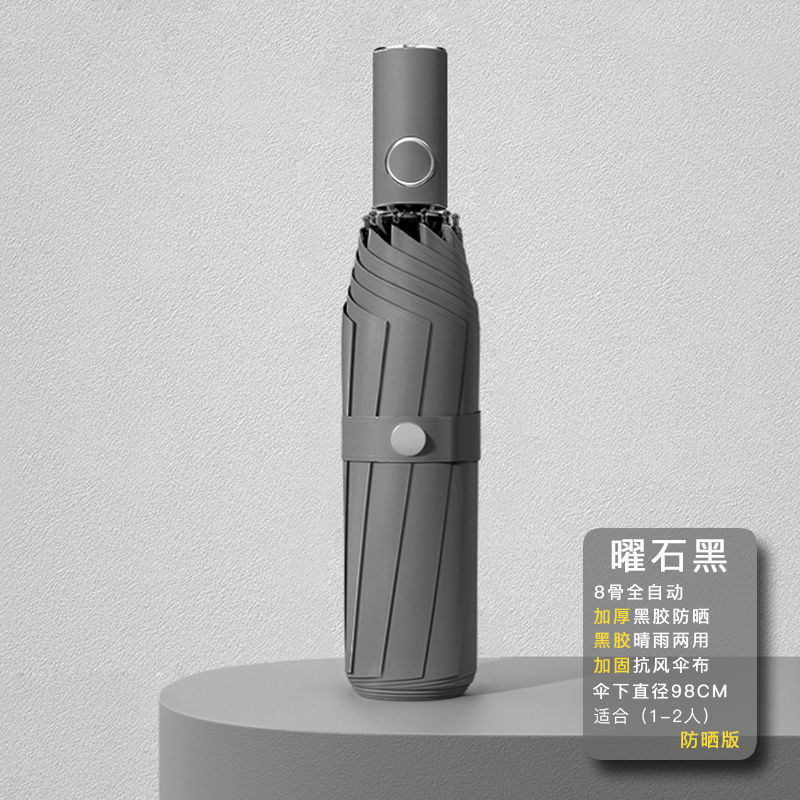 • [업그레이드 자동] 8 본 블랙 접착제 써니 우산 라이트 안개 회색