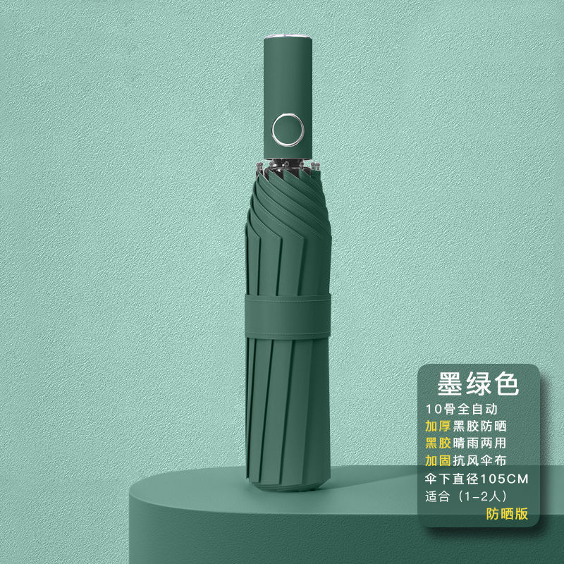 • [자동 업그레이드] 10 본 블랙 고무 써니 우산 다크 그린